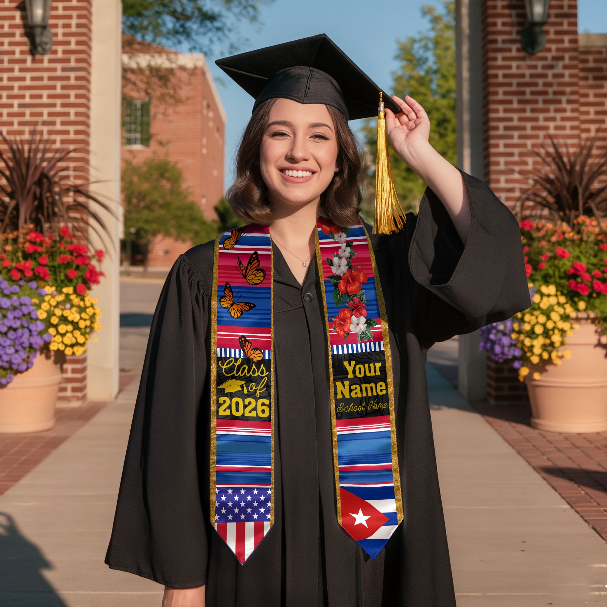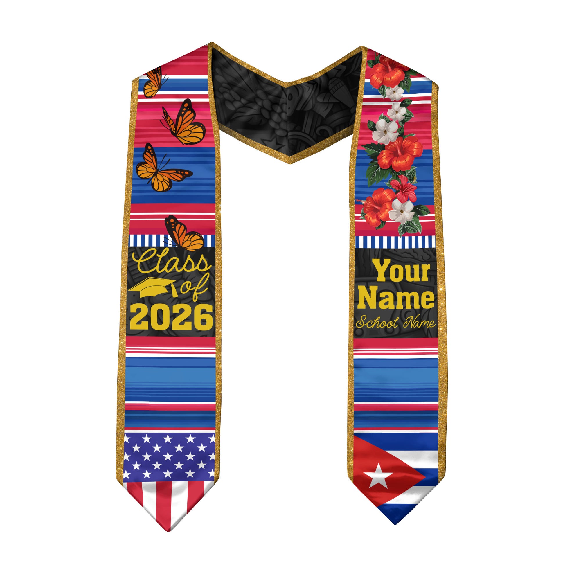 2026 Cuba Flag Graduation Sash, Cuba Stole, Personal Detail Option