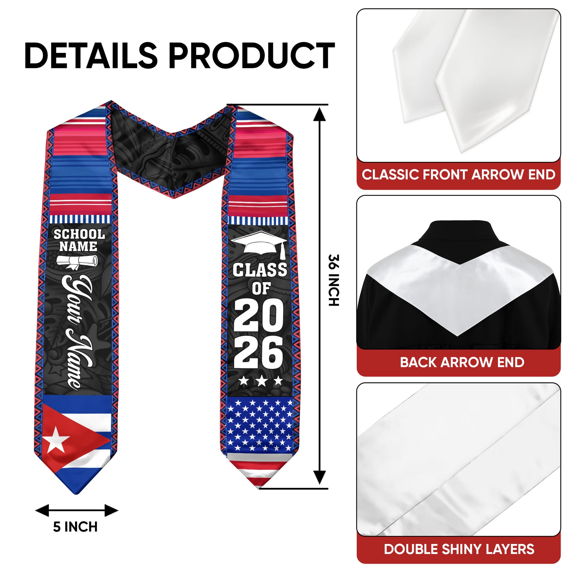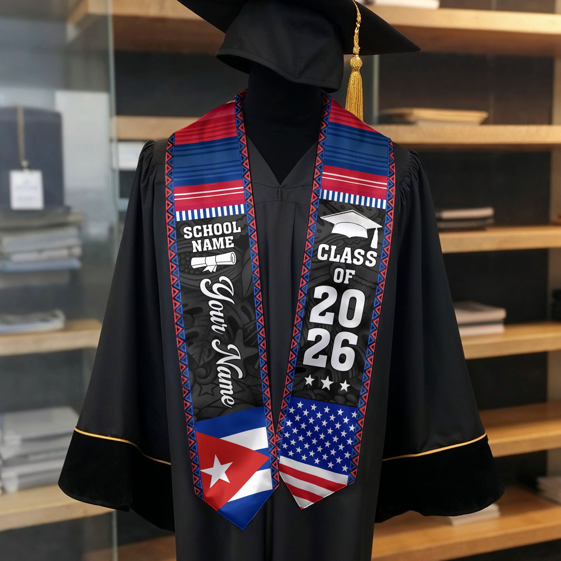 2026 Cuba Flag Graduation Stole, Cuban Sash, Personalization Option