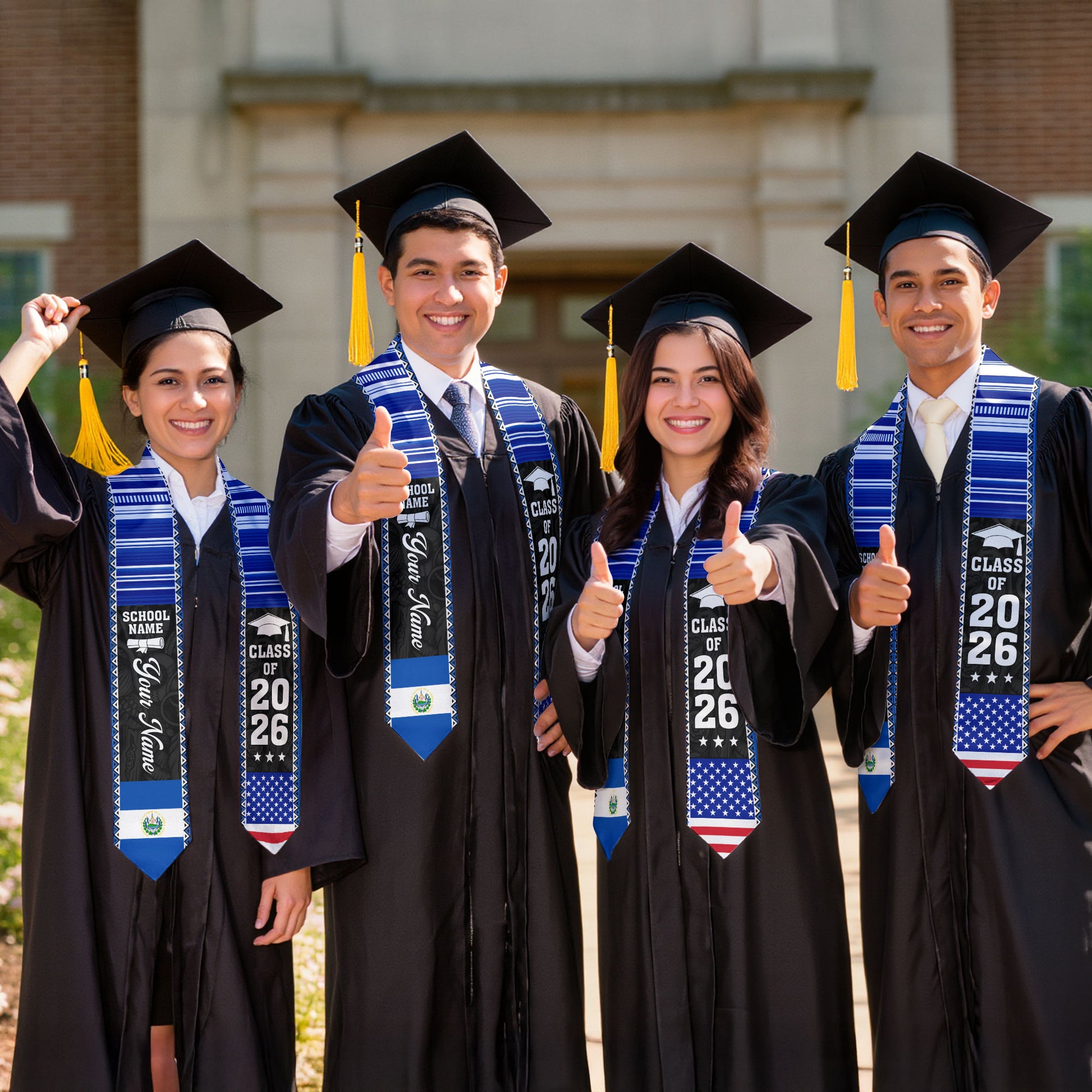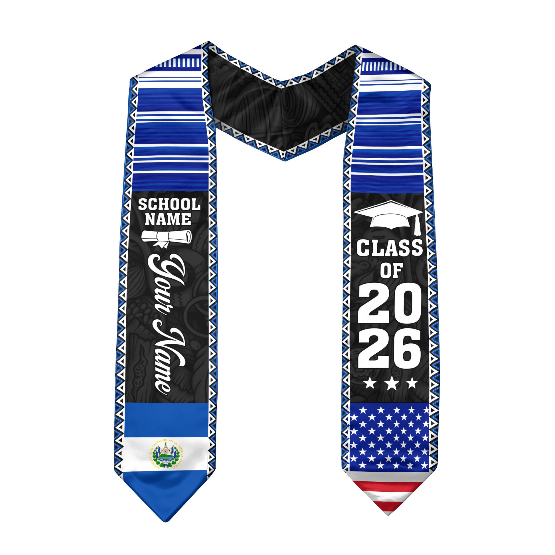 2026 El Salvador Flag Graduation Sash, El Salvador Stole, Add Custom Detail