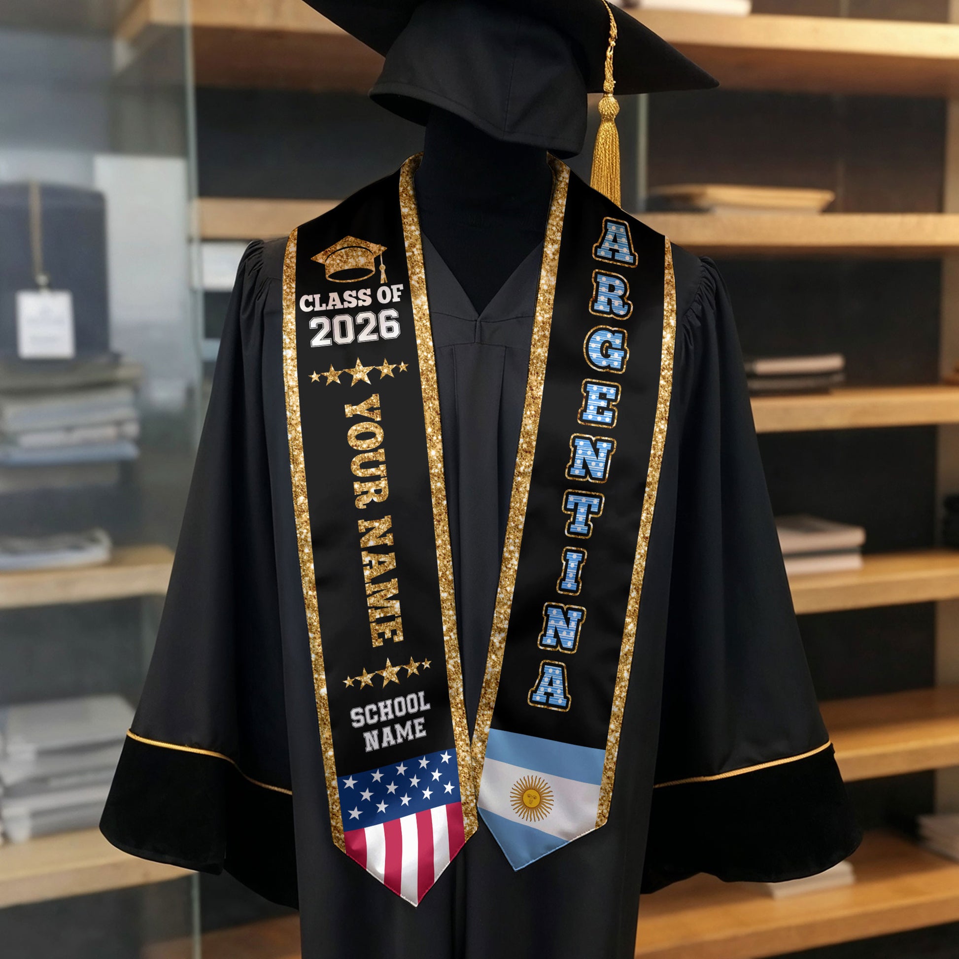 Argentina Graduation Stole 2026, Argentina Flag Sash, Personal Detail Option for Graduates