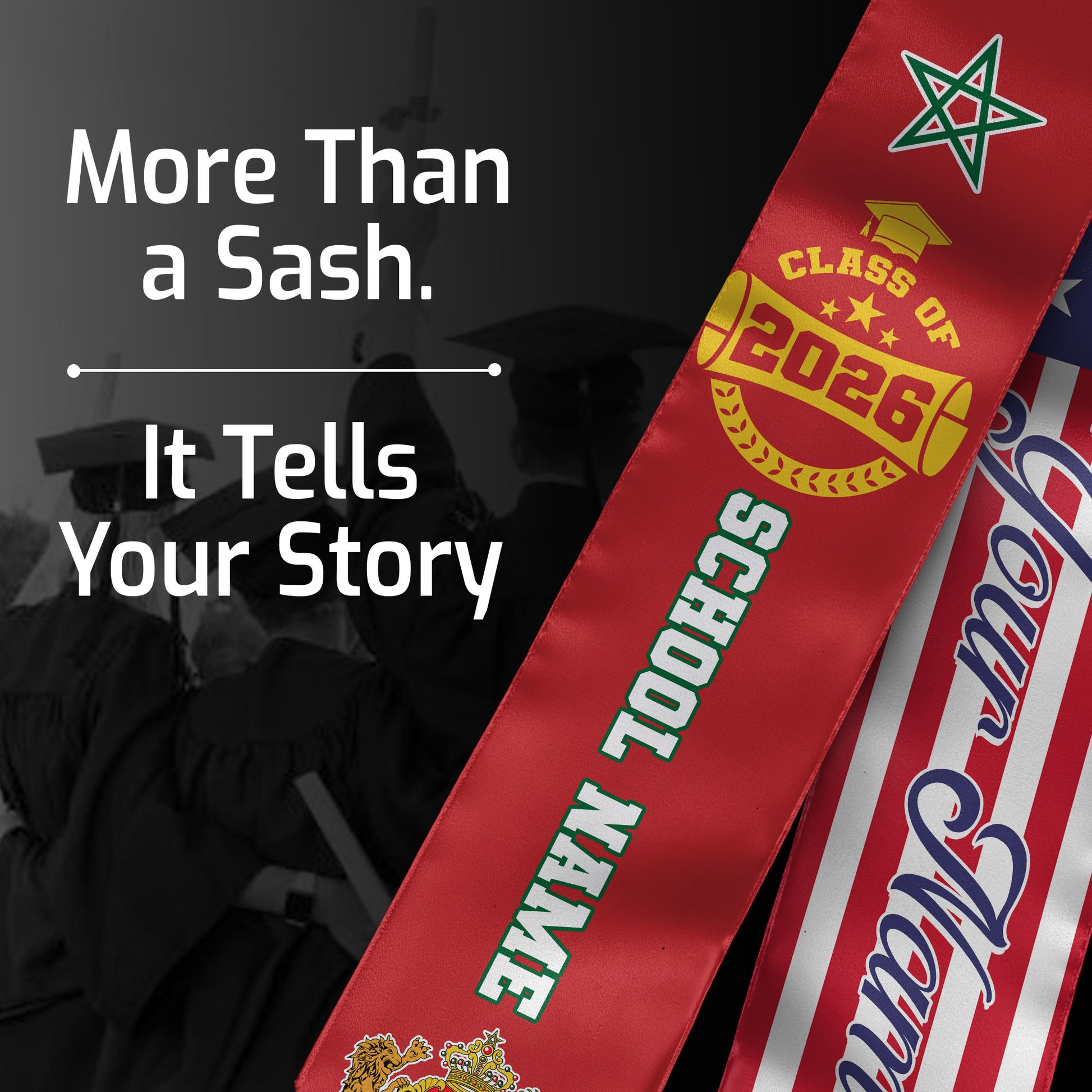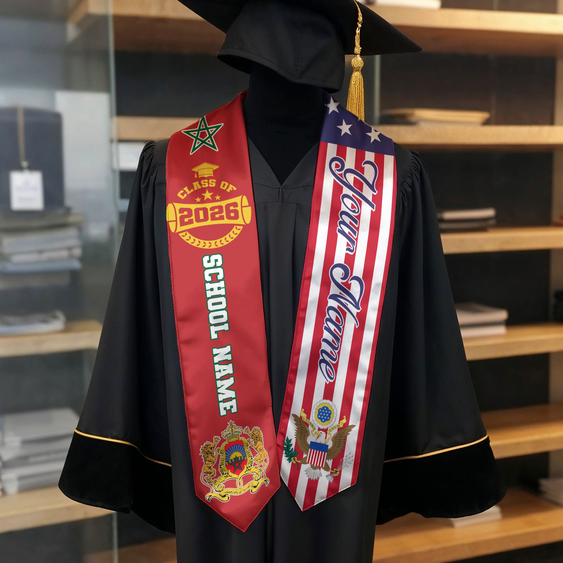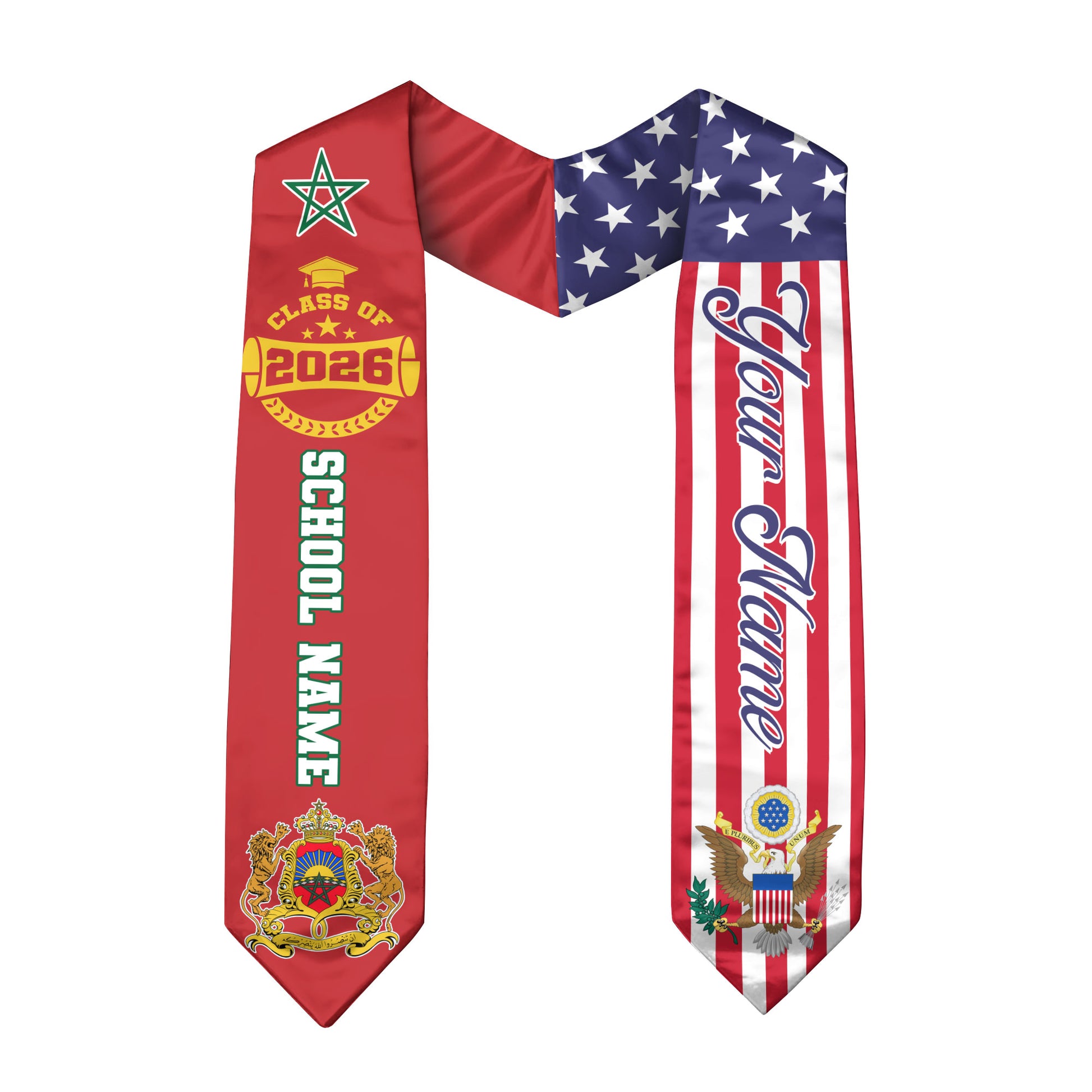 Class of 2026 Morocco Graduation Stole, Moroccan Flag Sash, Custom Style Grad Accessory