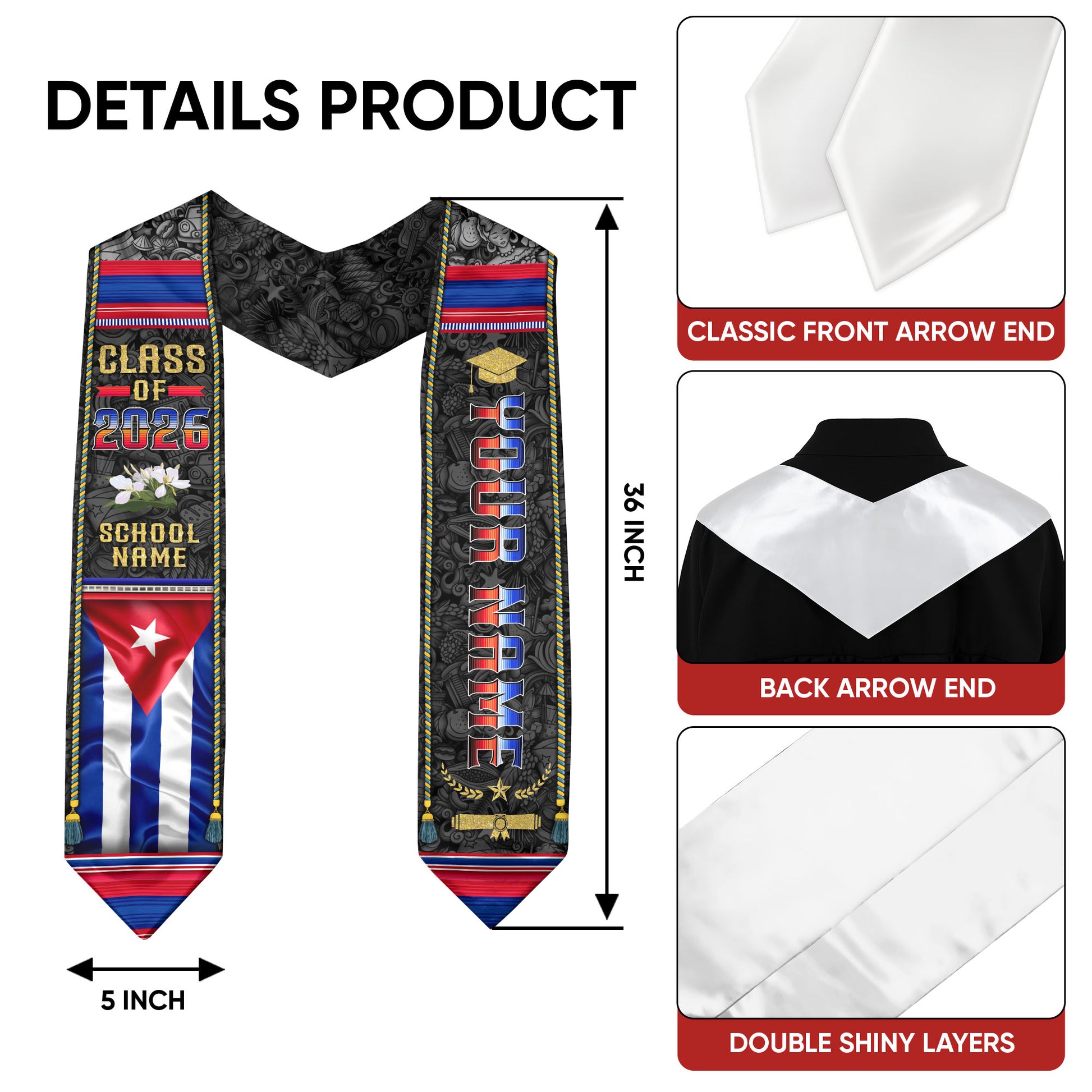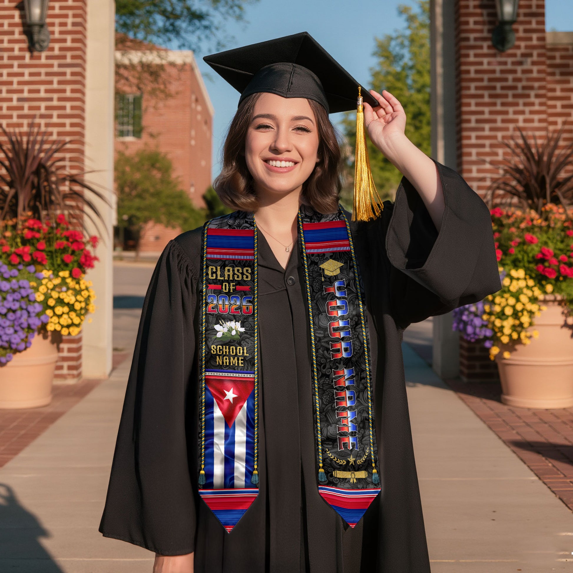 Cuba Flag Graduation Stole 2026, Cuban Grad Sash, Bespoke Touch Graduation Accessory