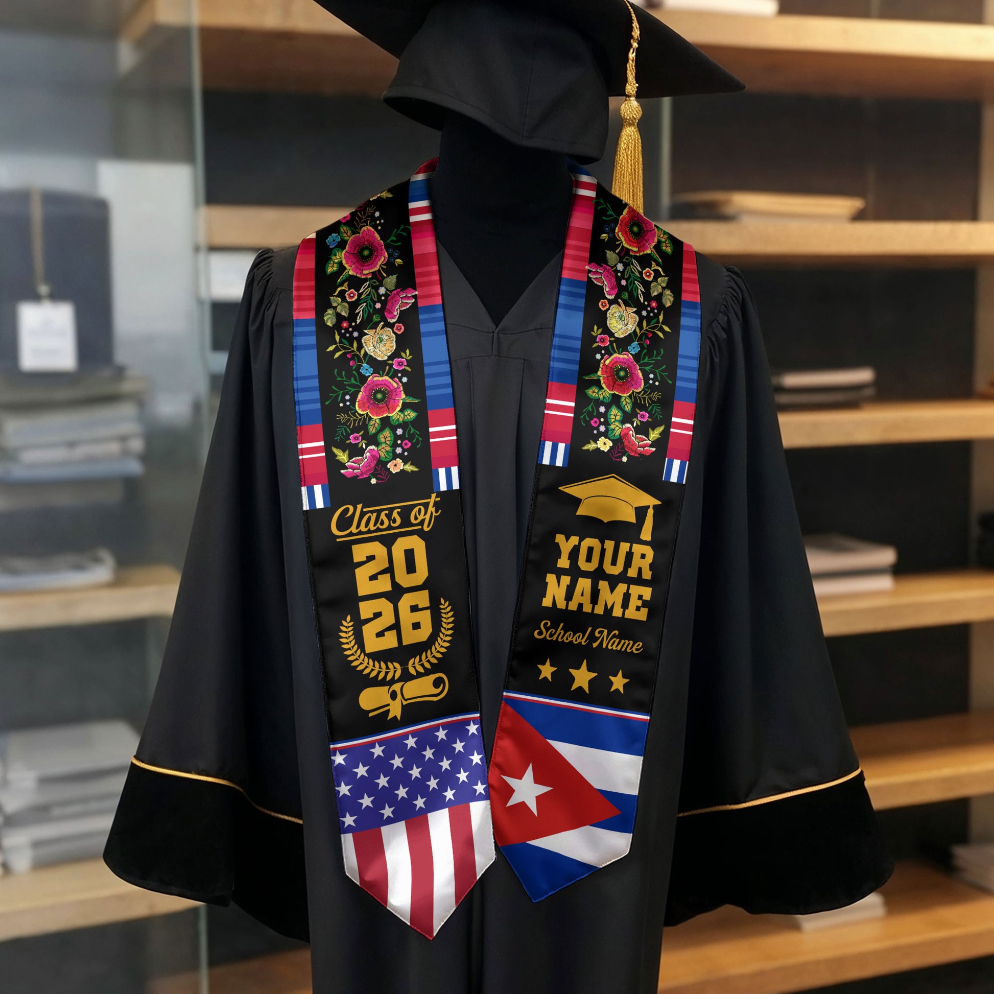 Cuba Graduation Stole 2026, Cuban Flag Sash, Add Personal Detail Option