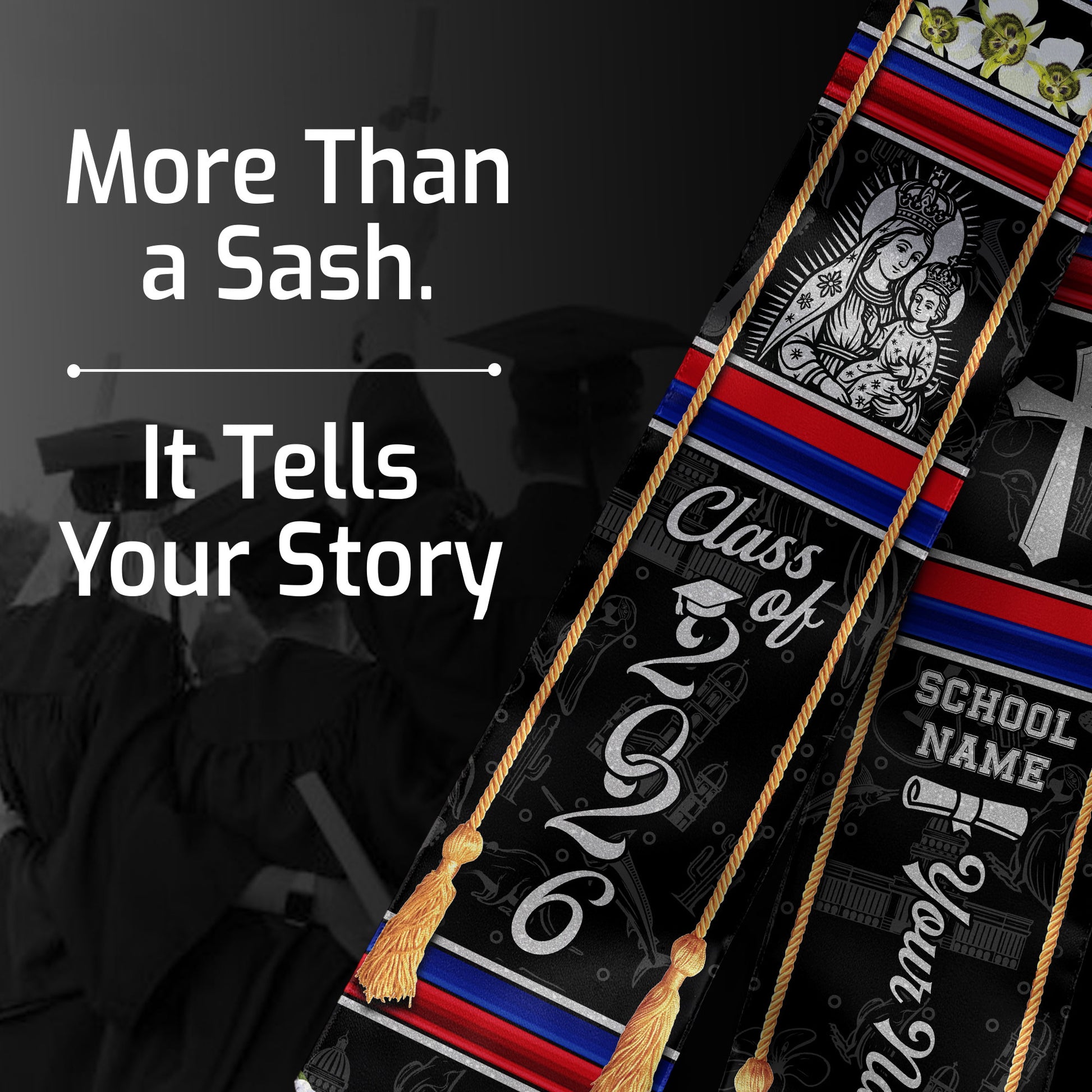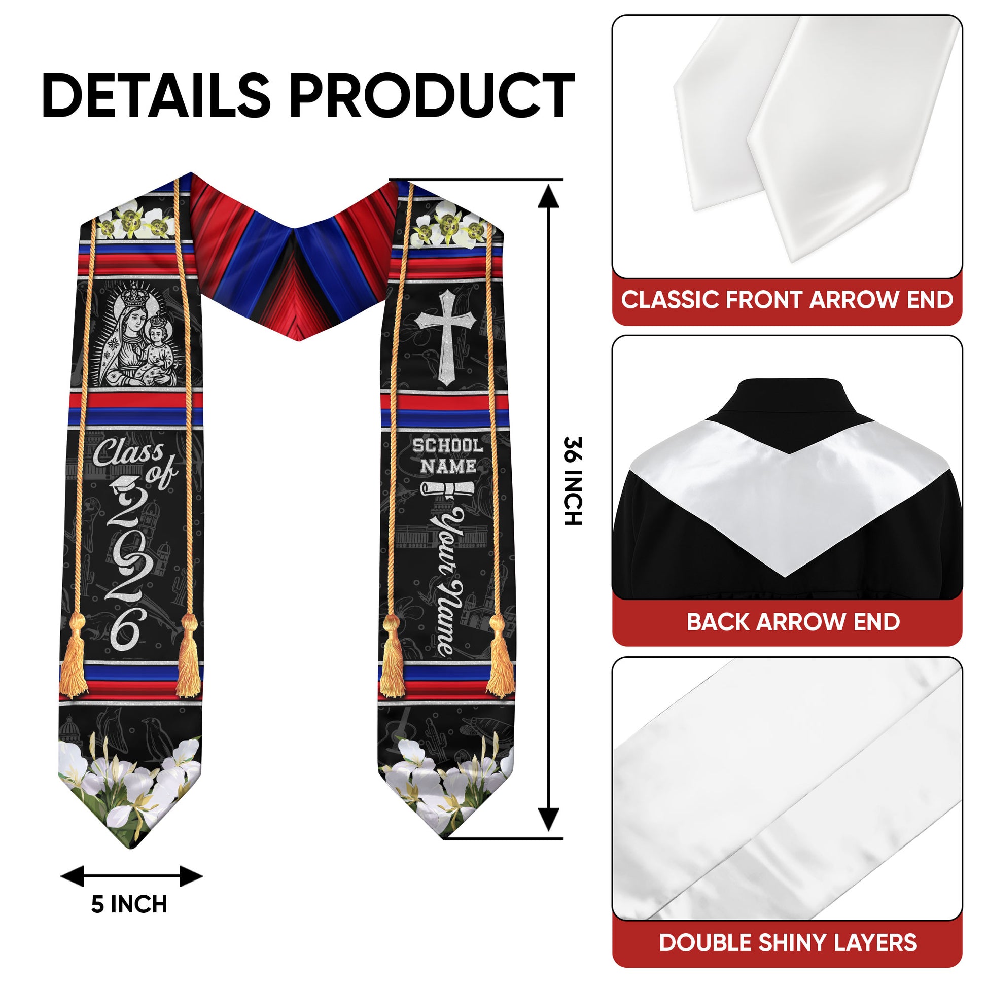 📏 Standard Graduation Size: 36" (91cm) long × 5" (12cm) wide — fits comfortably over all graduation gowns.