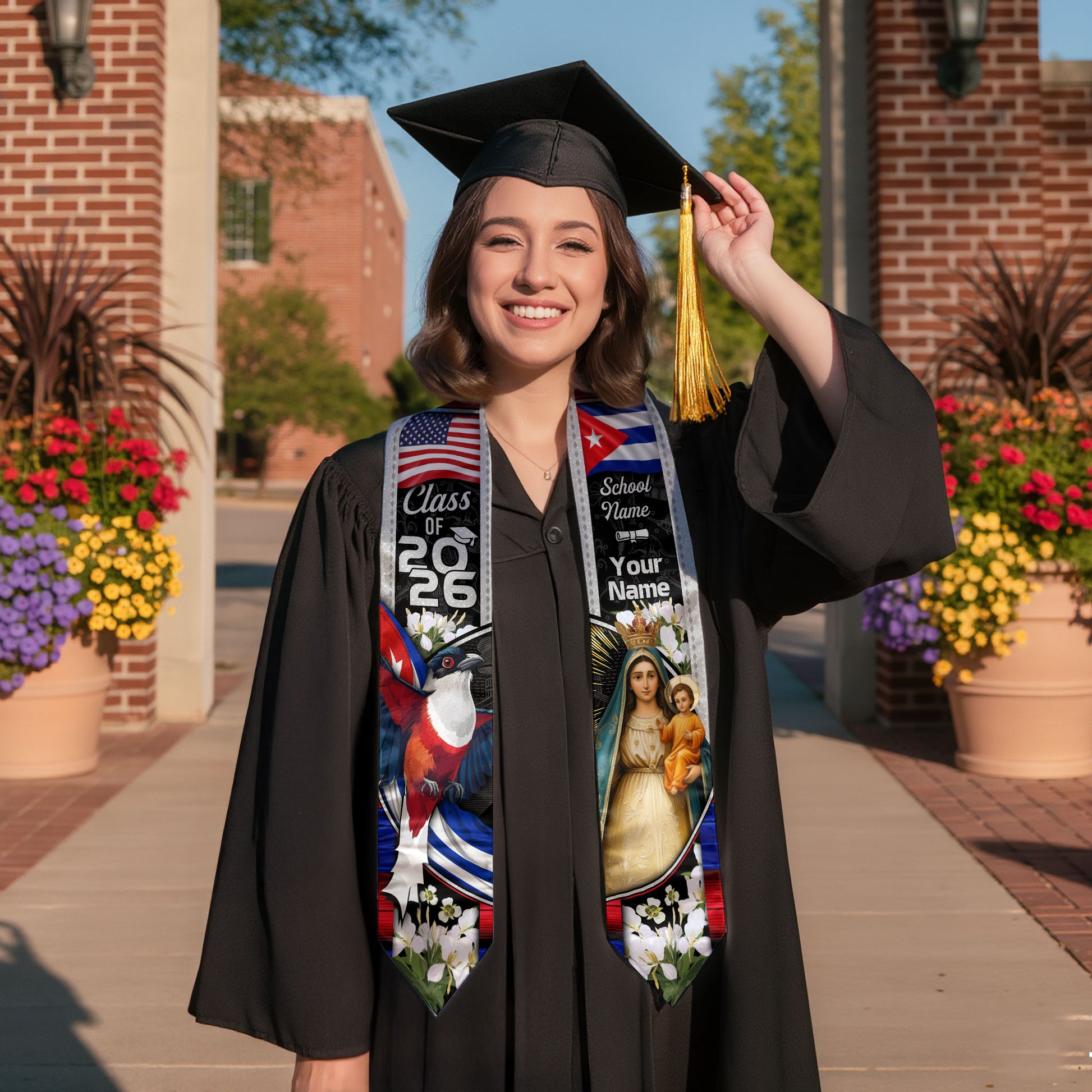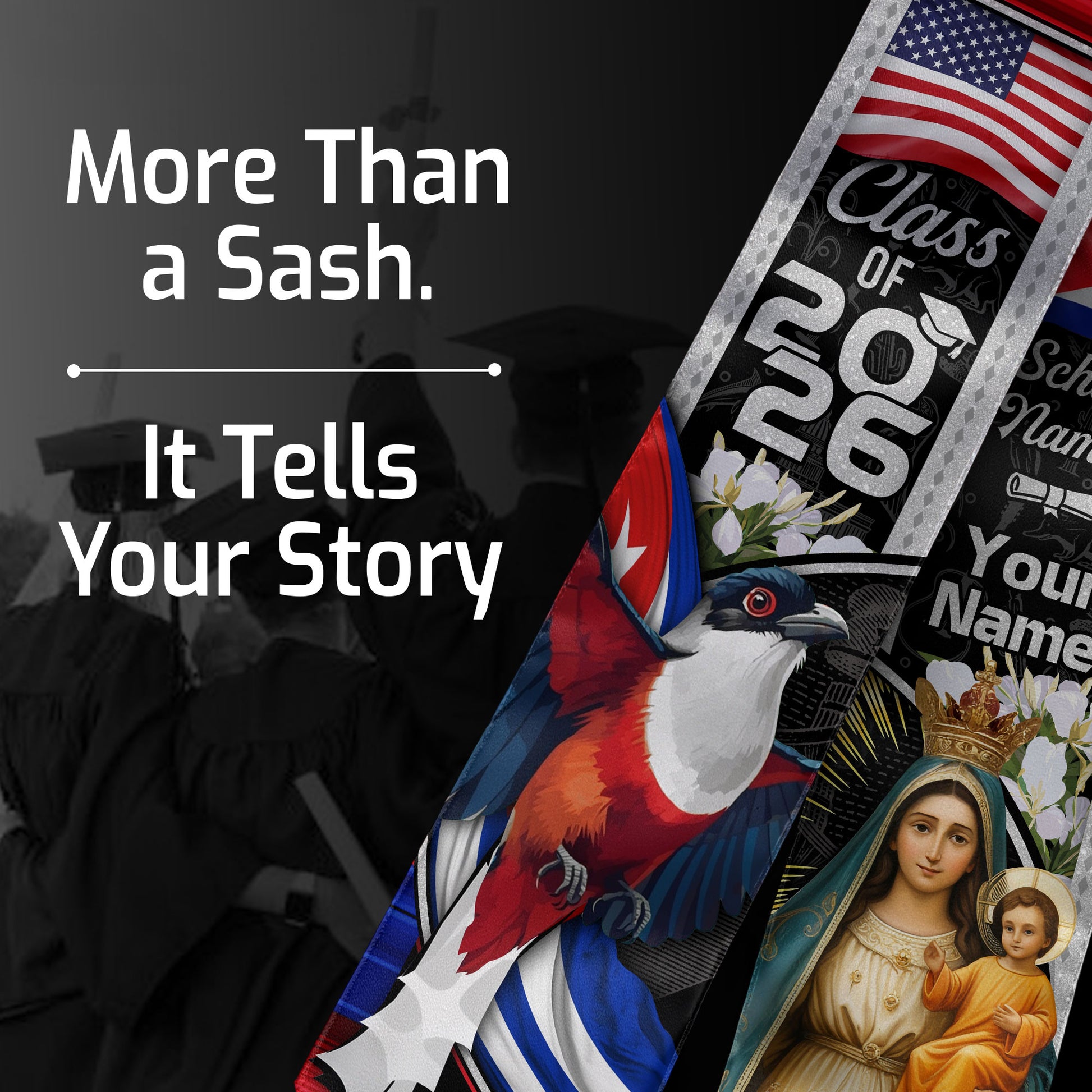Cuban Flag Graduation Sash 2026, Cuba Stole, Signature Custom Finish for Graduates