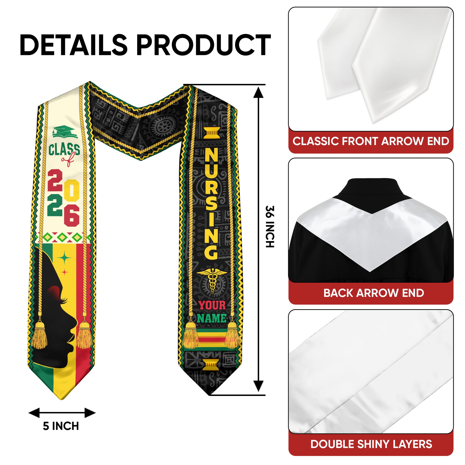 Customized African RN Graduation Stole, Nursing Ceremony Sash for Class of 2026