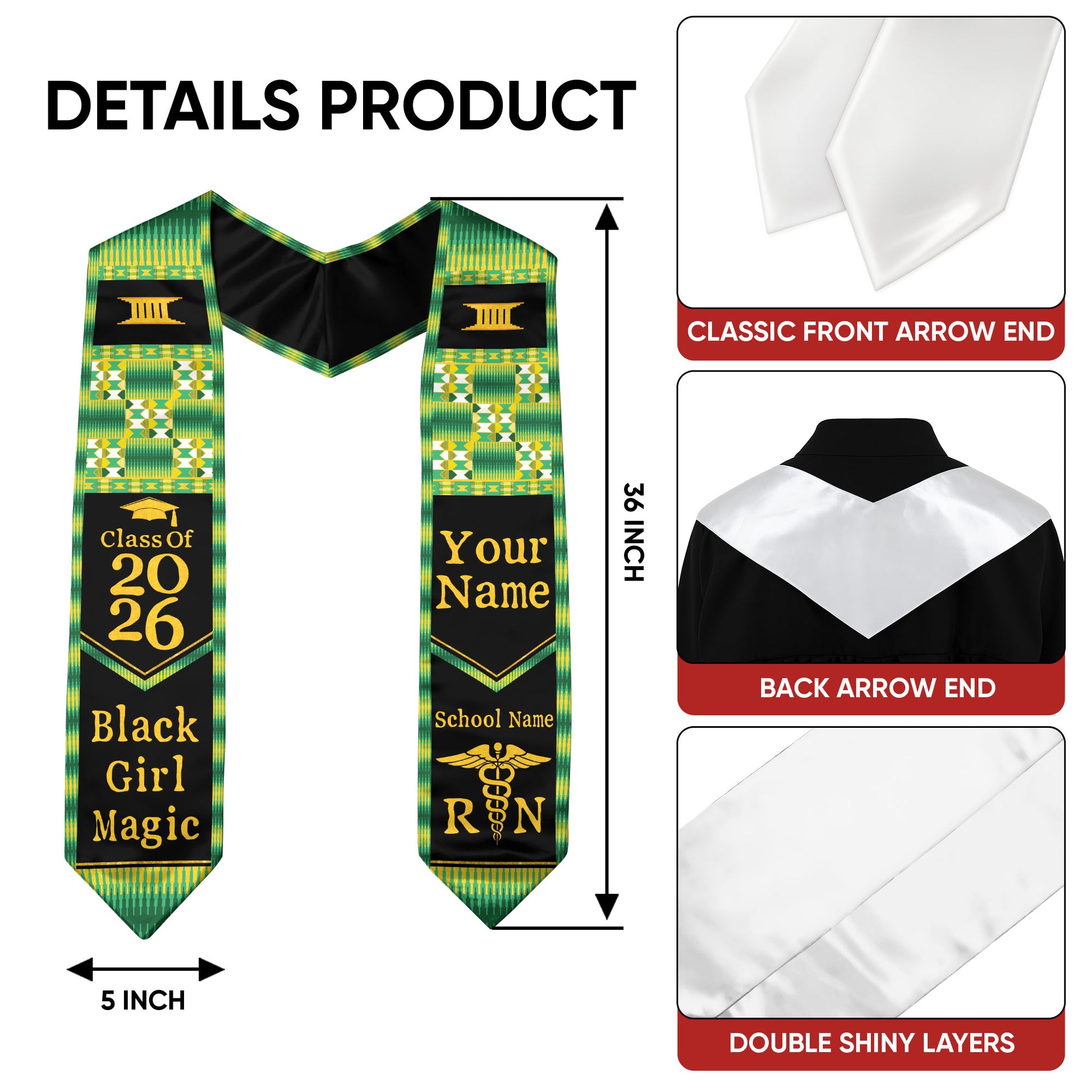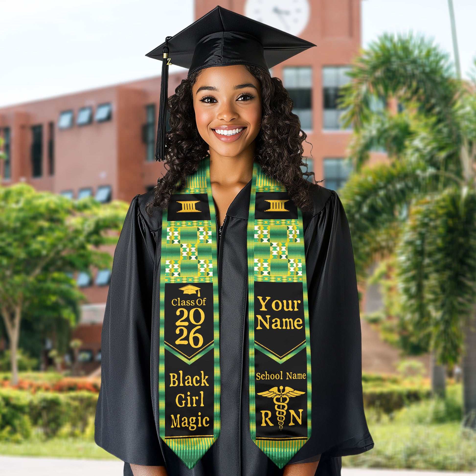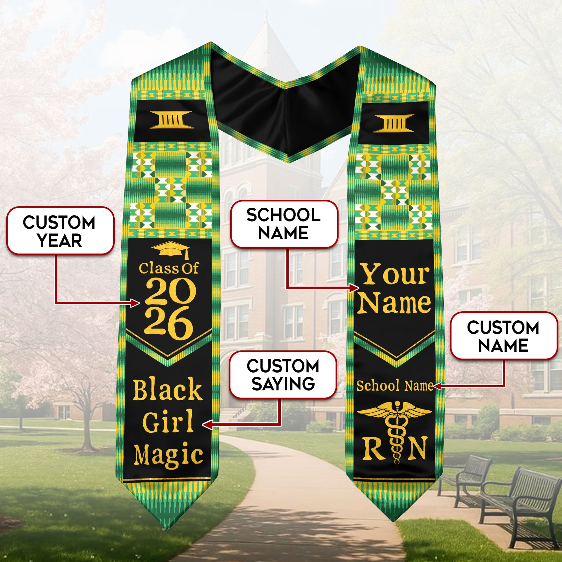 Customized African Heritage Nursing Graduation Stole for RN Graduates, BSN Sash 2026
