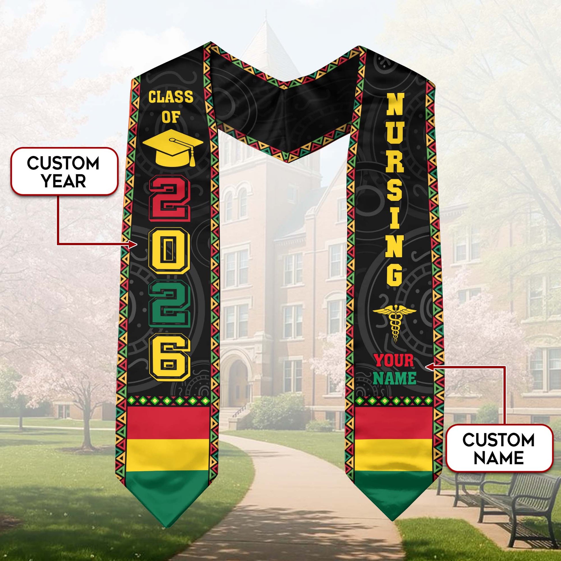 Customized African Nursing Graduation Stole for RN and BSN Nurses, Class of 2026 Sash