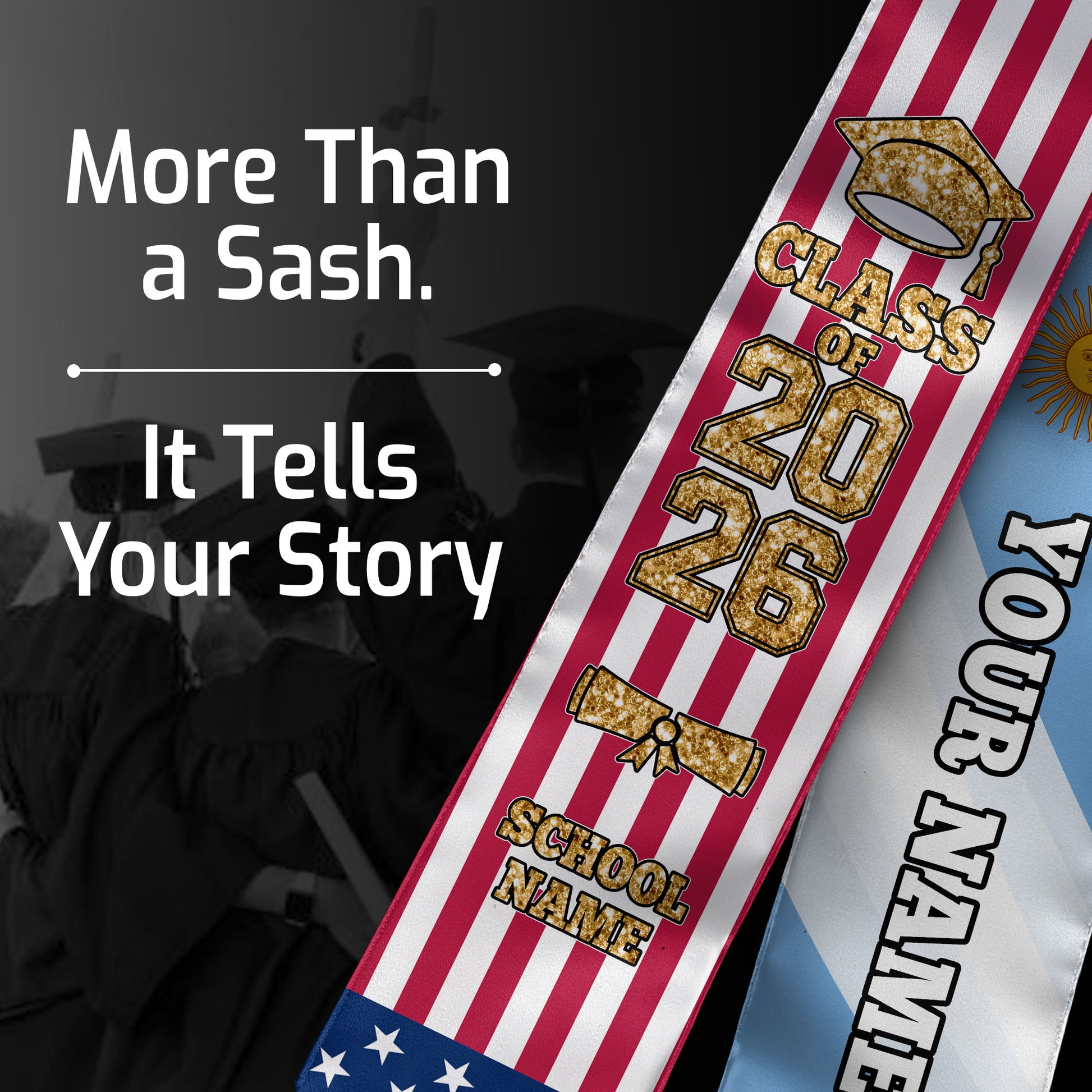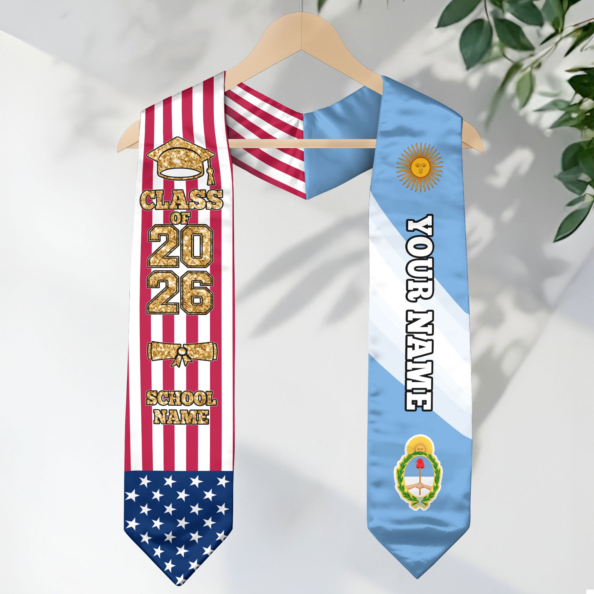 Customized Argentina Graduation Stole with National Flag Accent, Graduation Sash 2026, Class of 2026