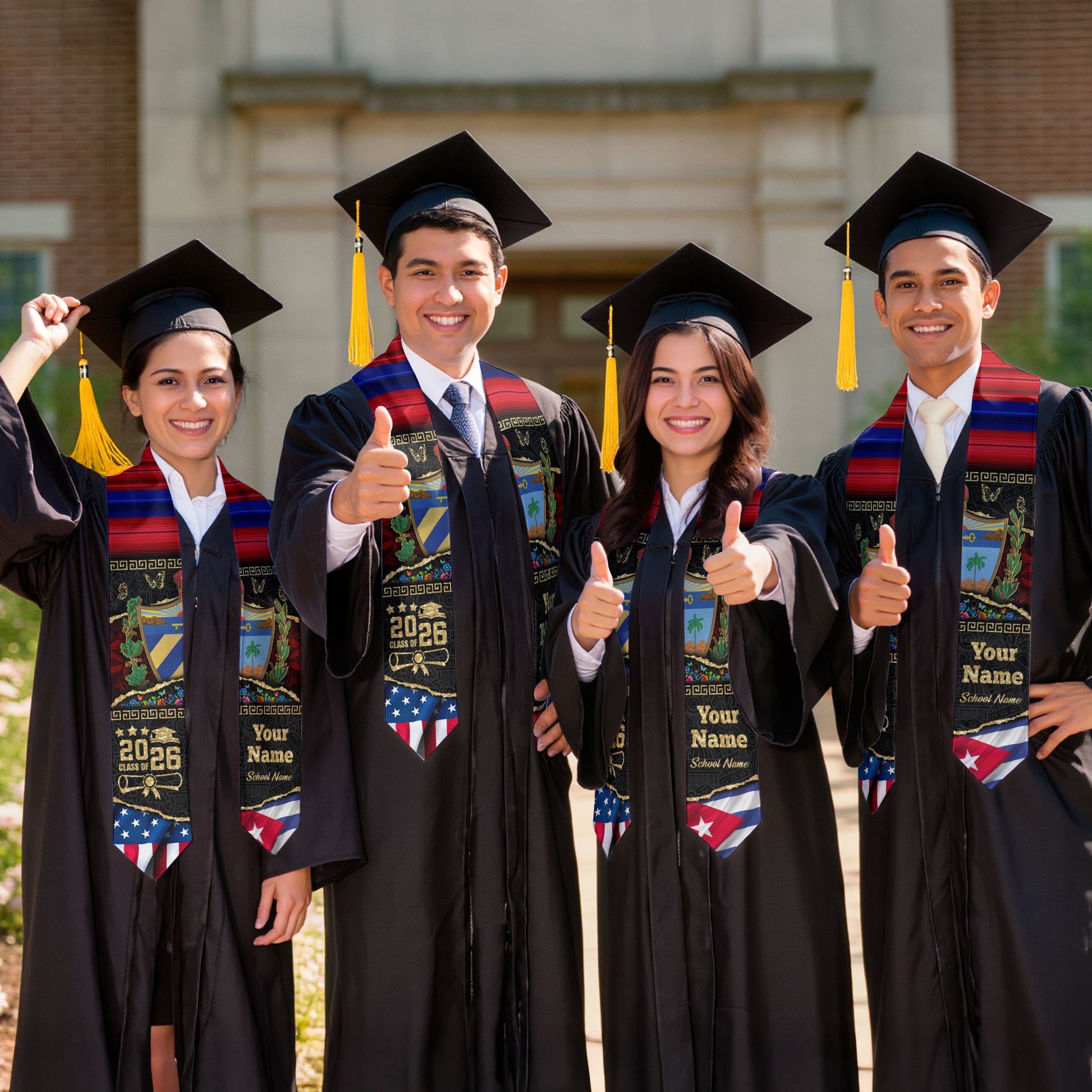 Customized Cuba Graduation Stole Featuring Cuban Flag Style, Graduation Sash Class of 2026