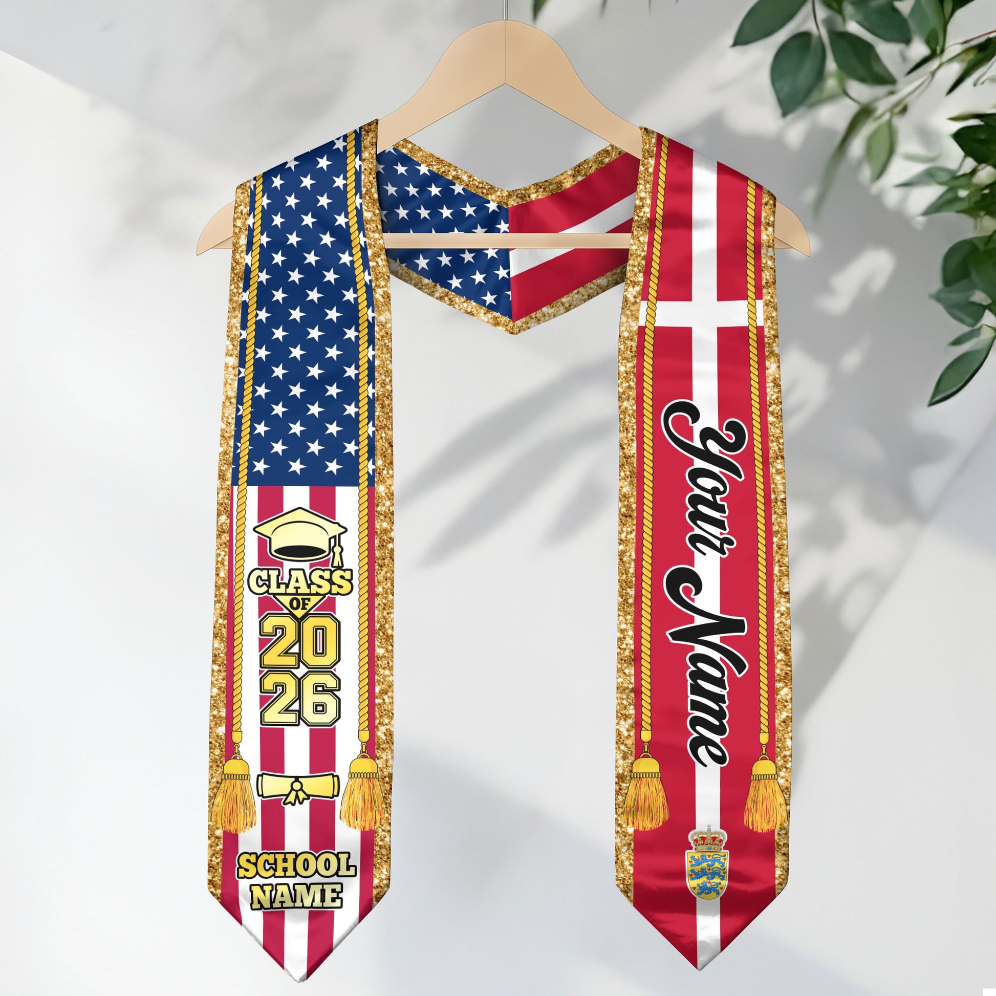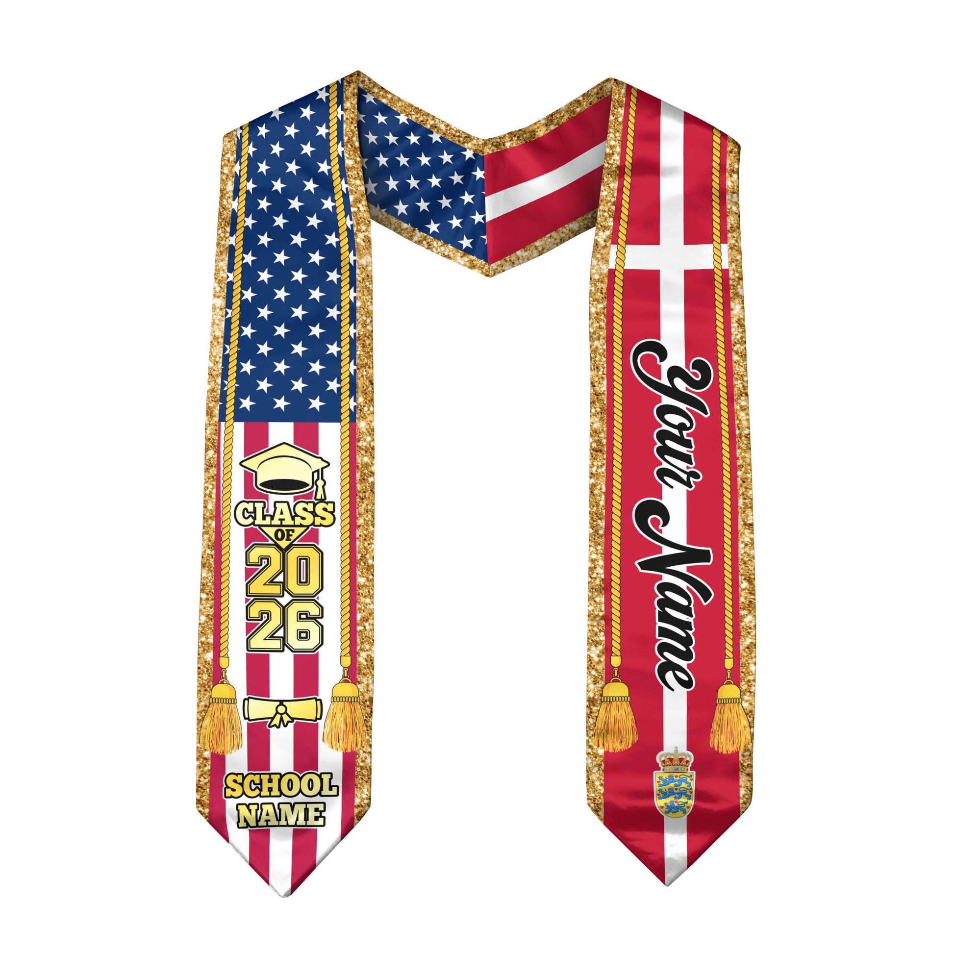 Customized Denmark Graduation Stole with Danish Flag Emblem, Graduation Sash for Class of 2026
