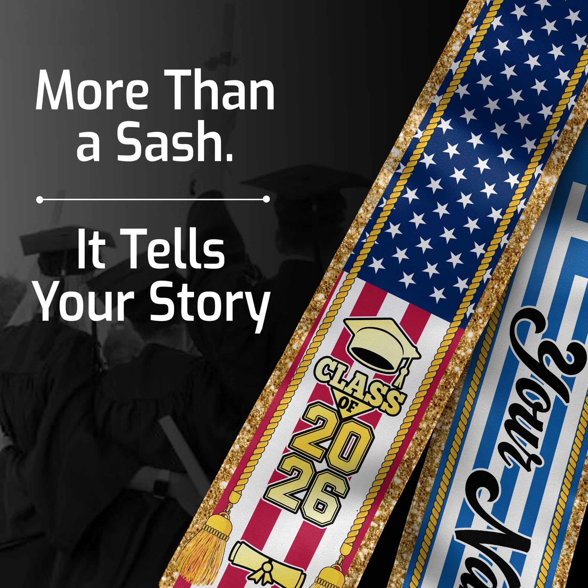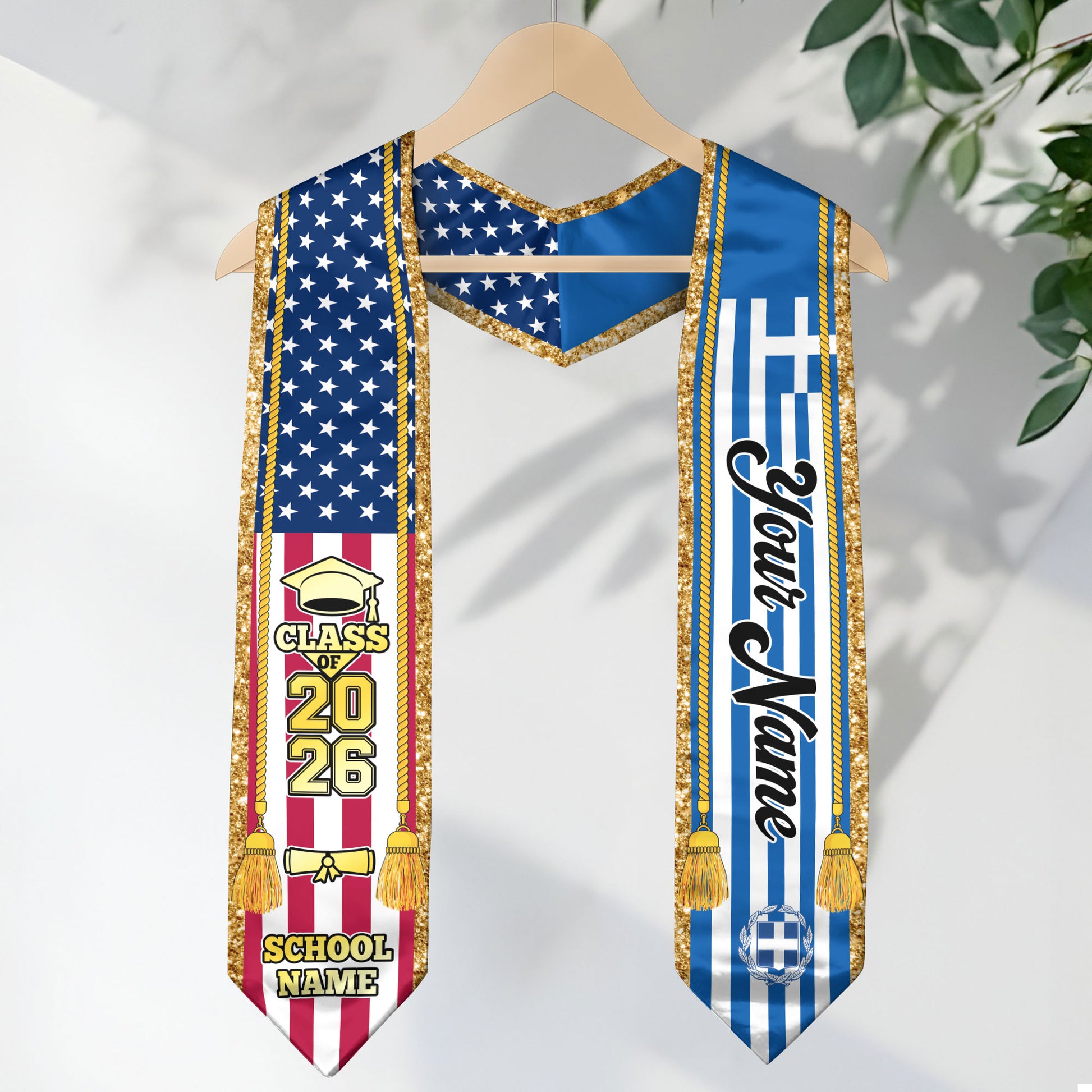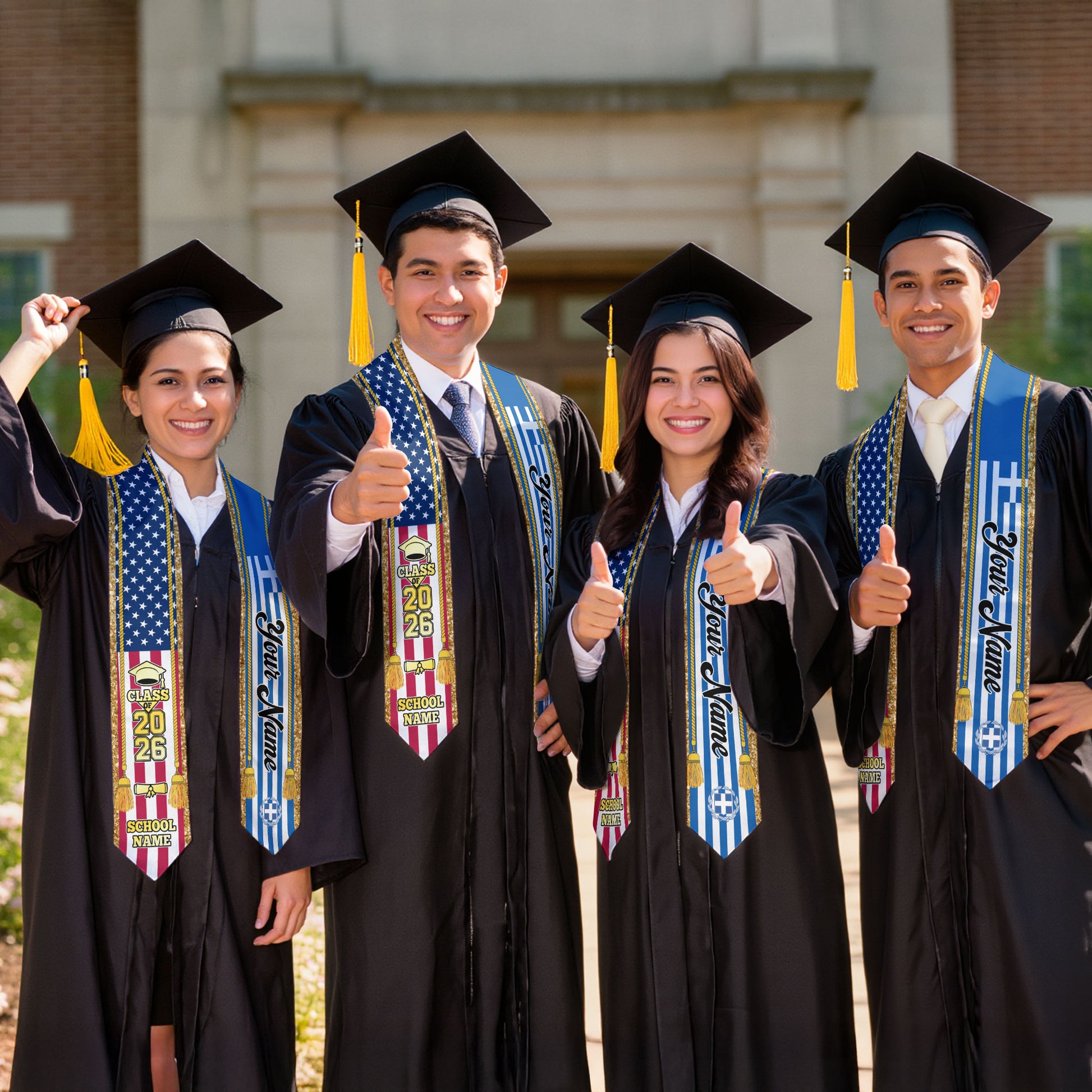 Customized Greece Graduation Stole with Greek Flag Emblem, Graduation Sash for Class of 2026