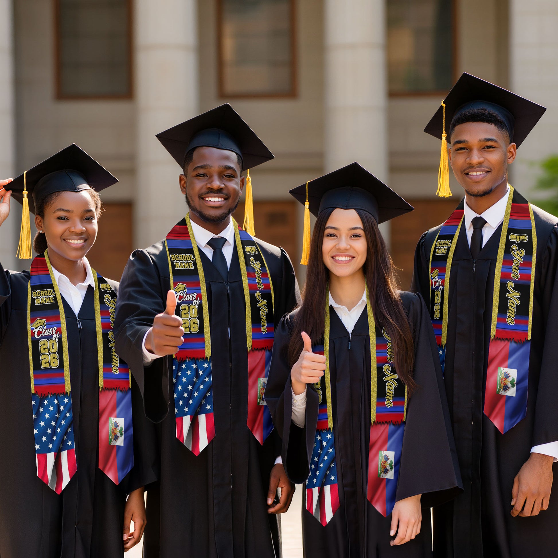 Customized Haiti Graduation Stole with Haitian Flag Inspired Motif, Graduation Sash Class of 2026
