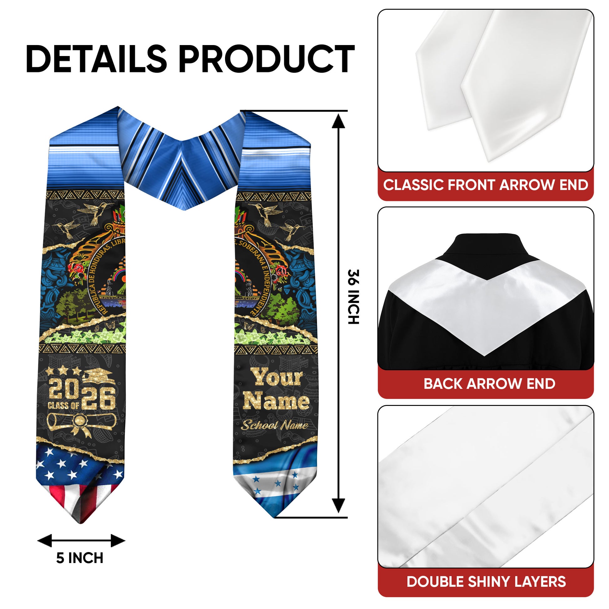 Customized Honduras Graduation Stole Highlighting National Flag Style, Graduation Sash 2026
