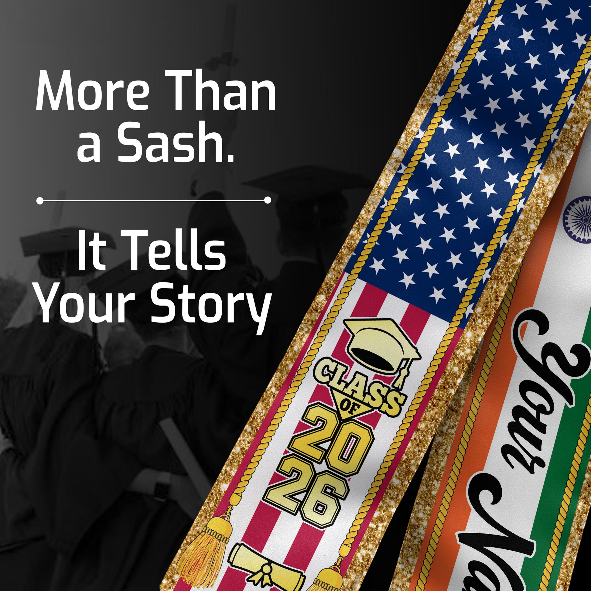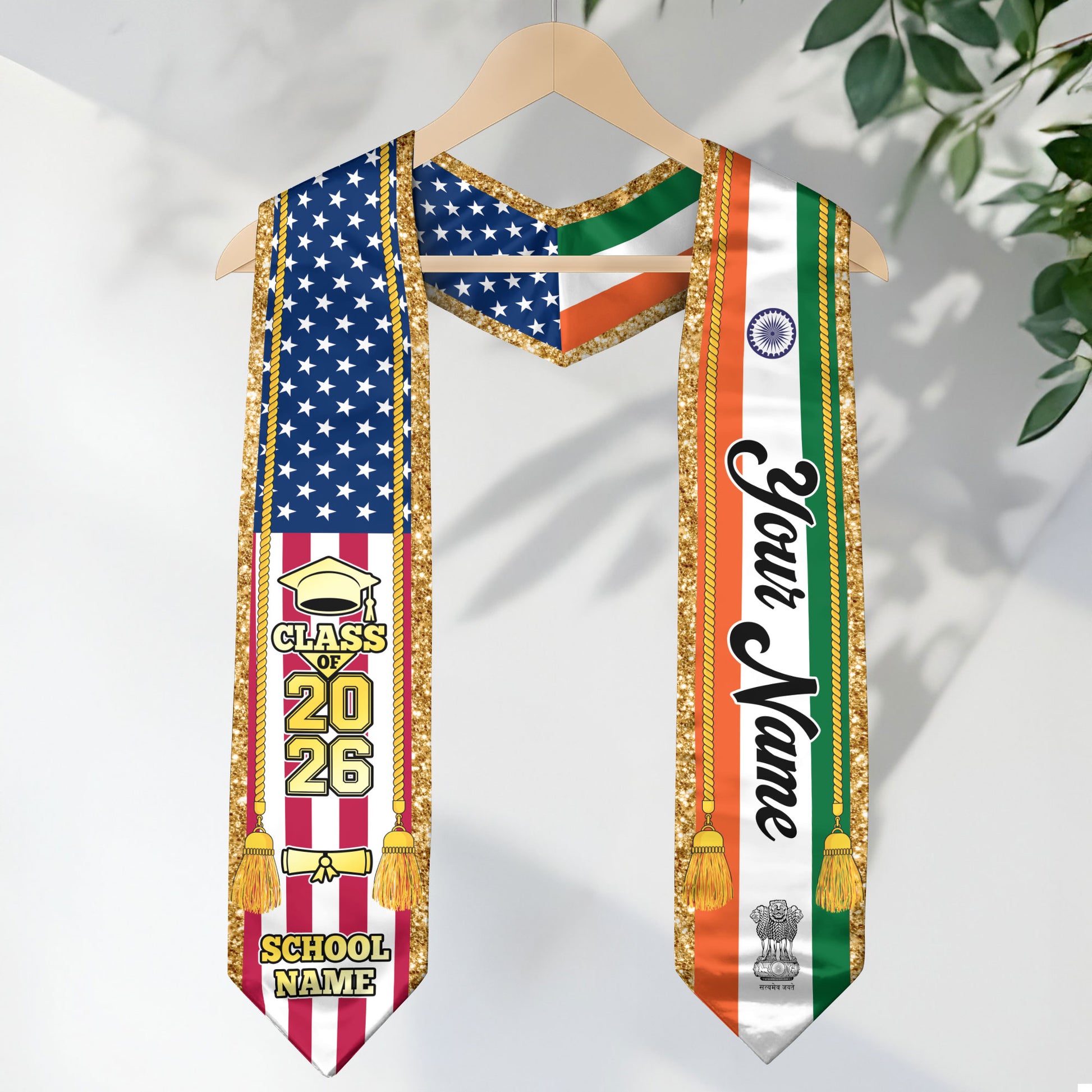Customized India Graduation Stole with Indian Flag Emblem, Graduation Sash for Class of 2026