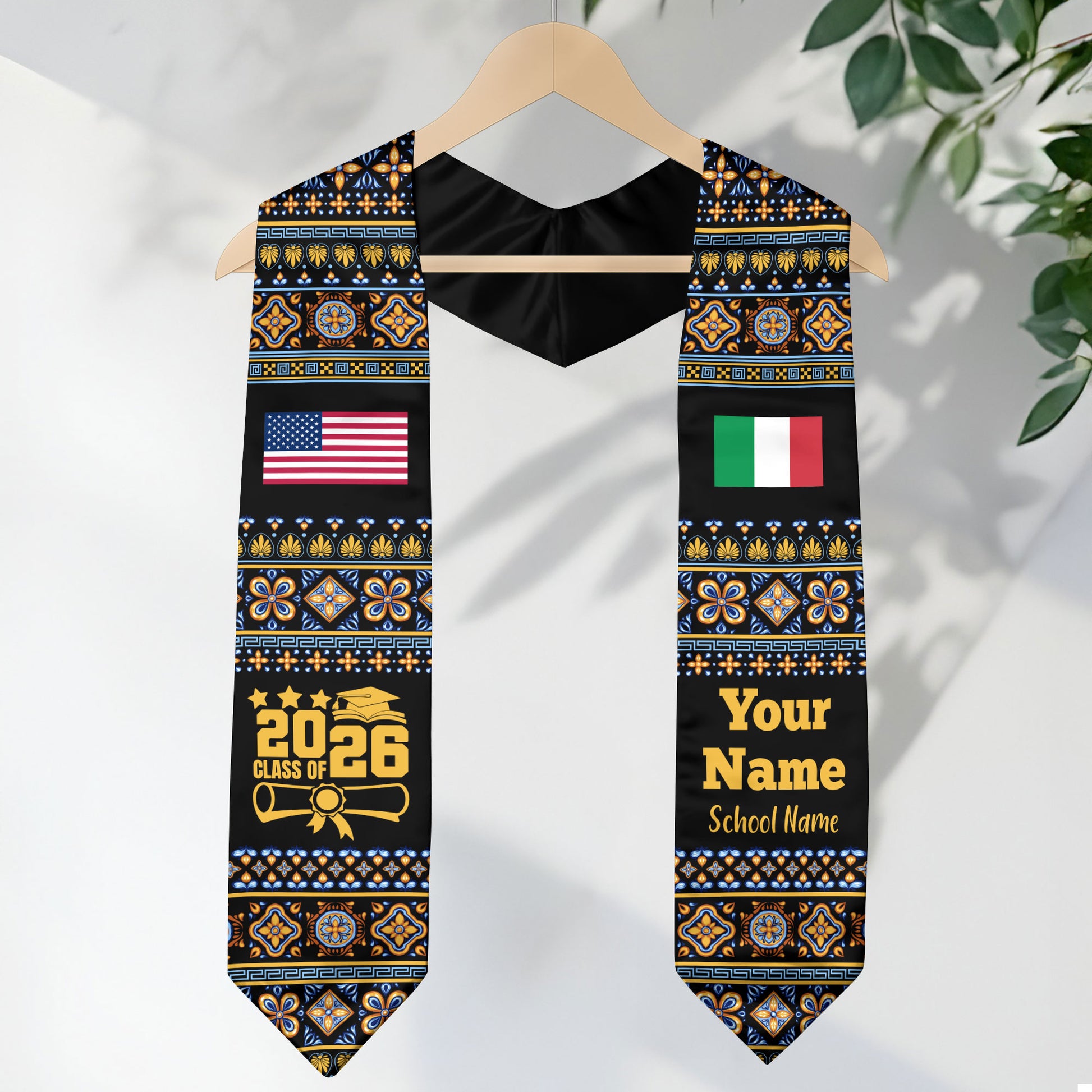 Customized Italy Graduation Stole Featuring National Flag Motif, Graduation Sash for Class of 2026