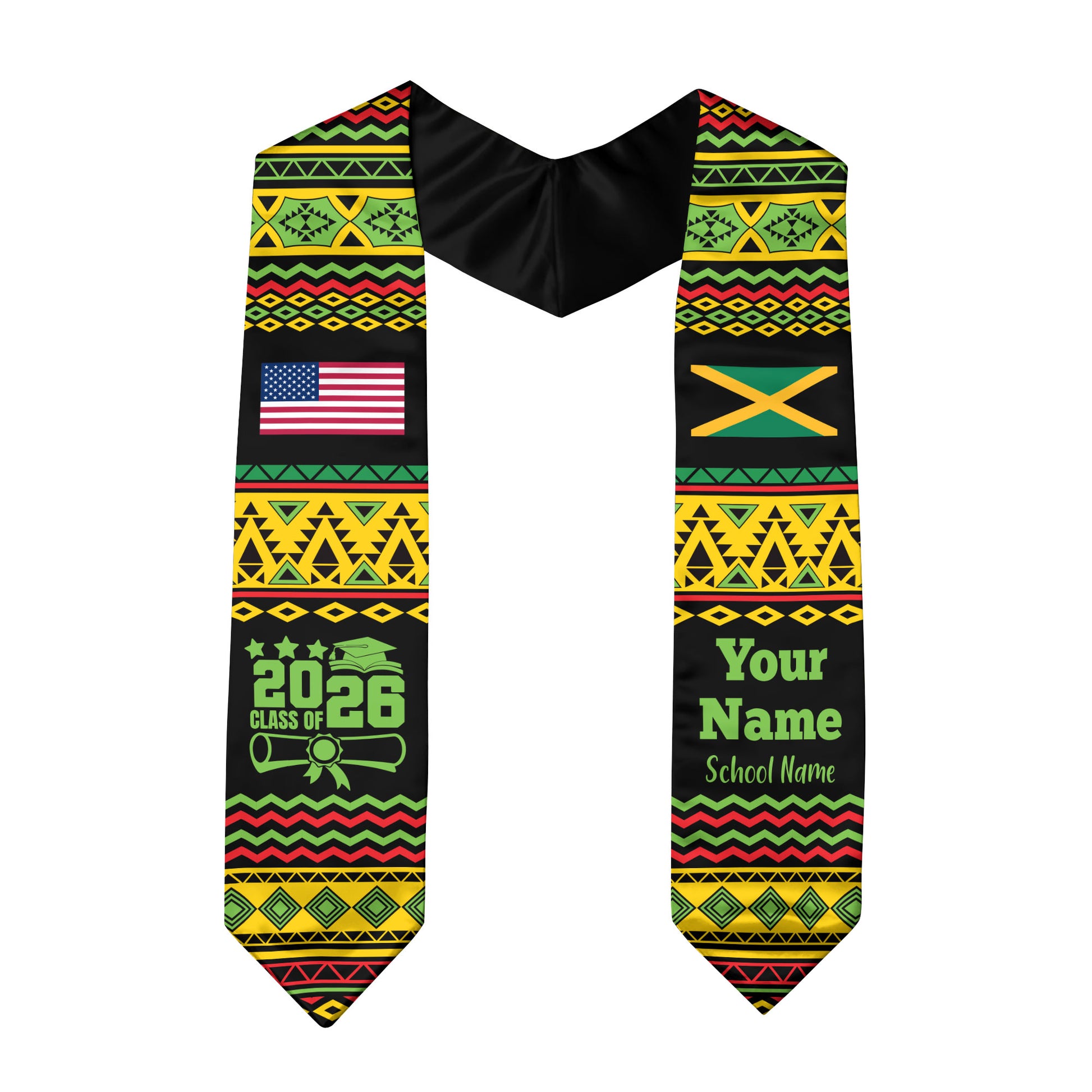 Customized Jamaica Graduation Stole Featuring National Flag Motif, Graduation Sash for Class of 2026