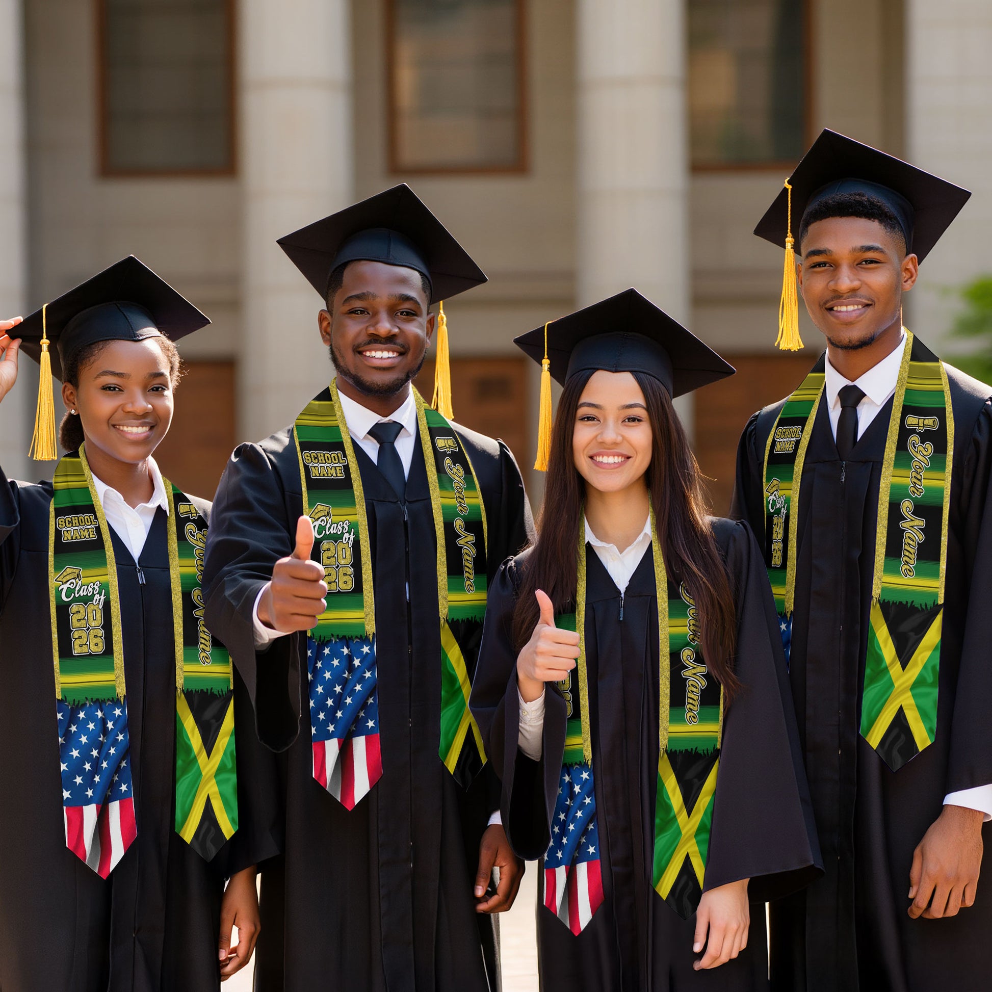Customized Jamaica Graduation Stole Showcasing Jamaican Flag Style, Graduation Sash Class of 2026