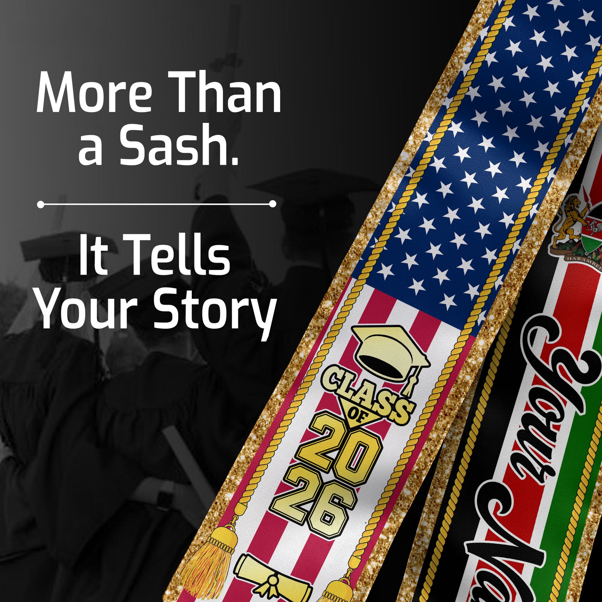 Customized Kenya Graduation Stole with Kenyan Flag Emblem, Graduation Sash for Class of 2026
