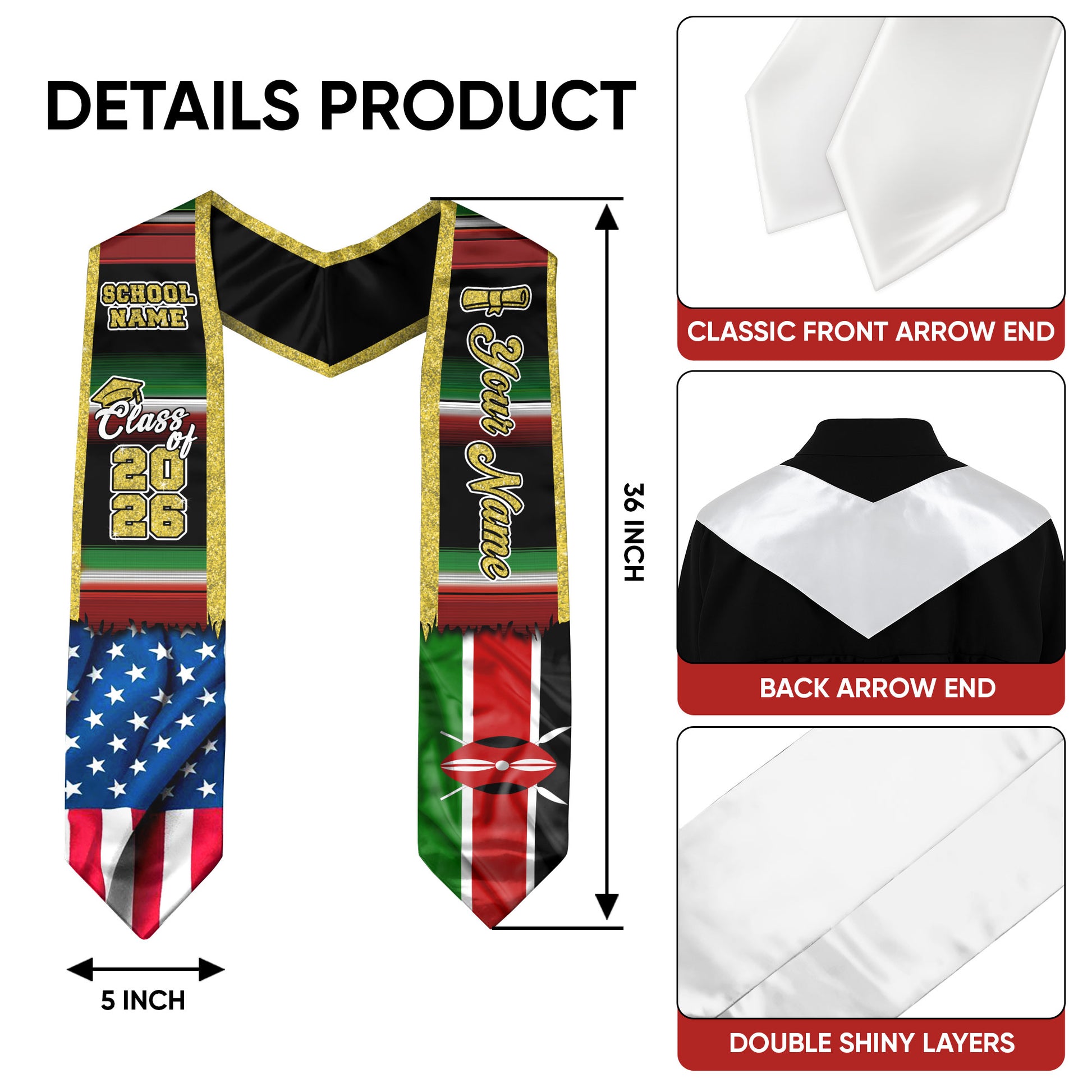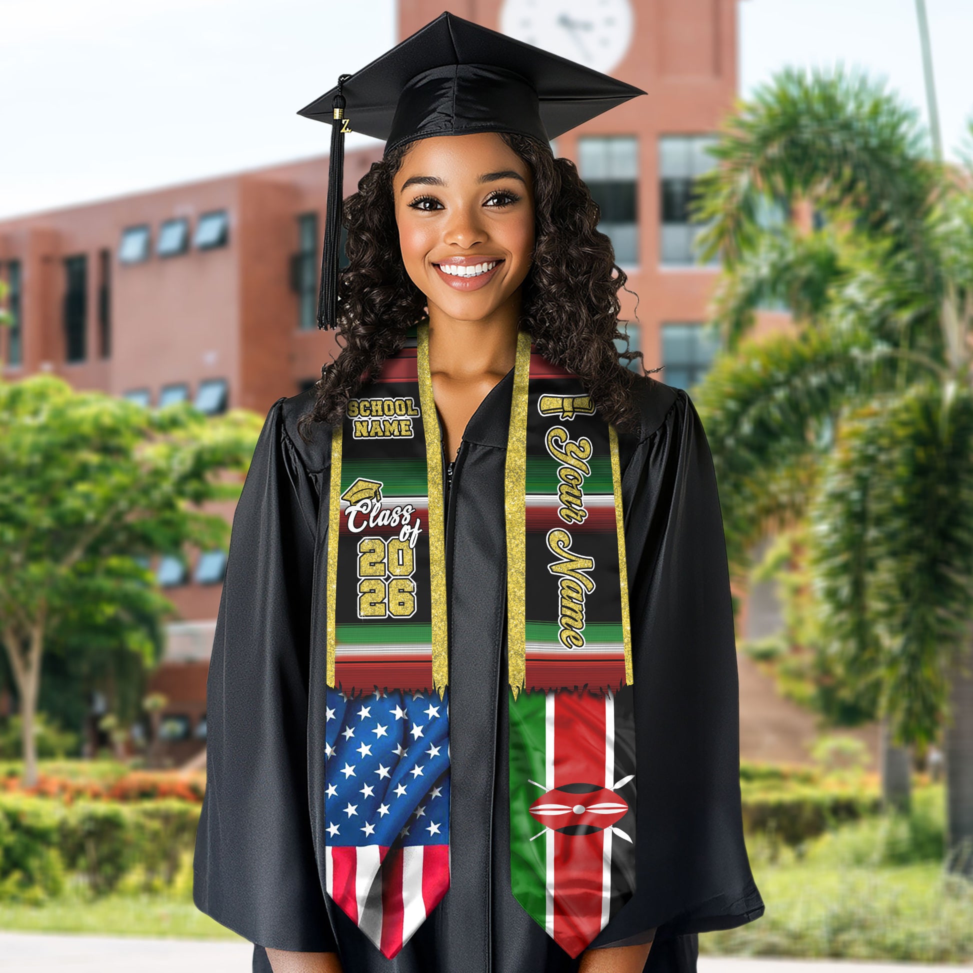 Customized Kenya Graduation Stole with Kenyan Flag Inspired Design, Graduation Sash for Class of 2026
