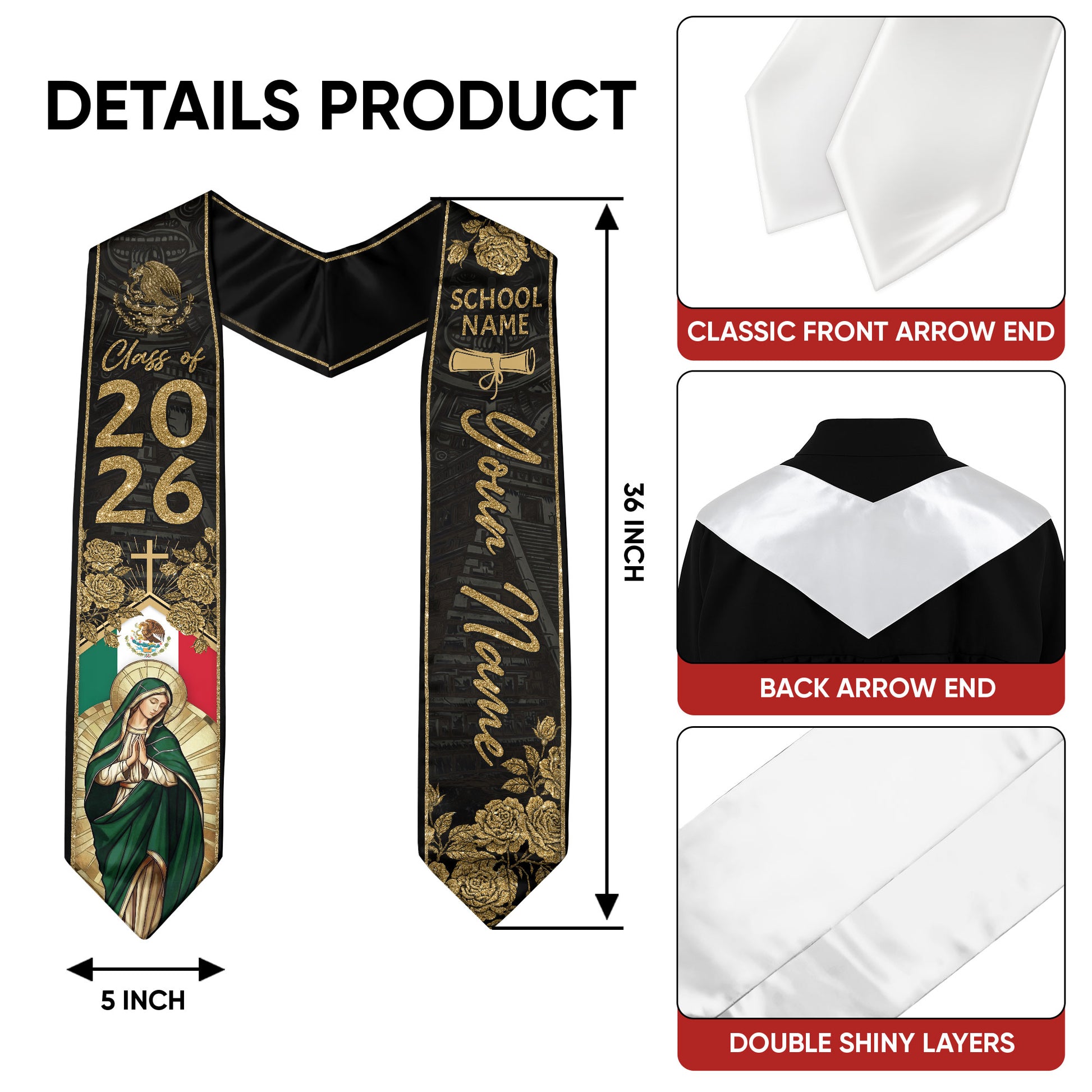 📏 Standard Graduation Size: 36" (91cm) long × 5" (12cm) wide — fits comfortably over all graduation gowns.
