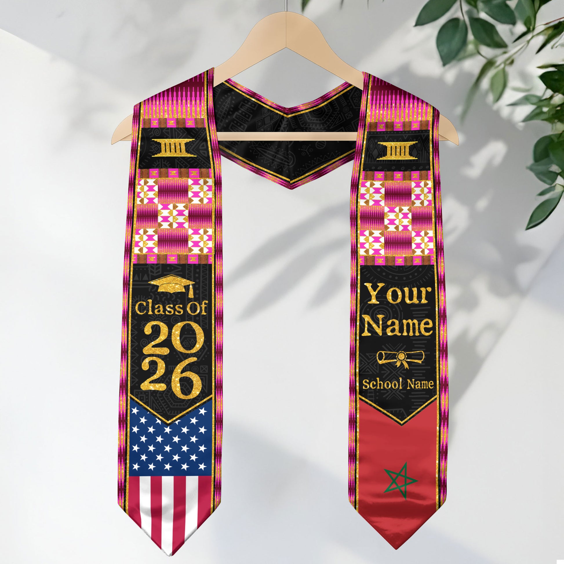 Customized Morocco Graduation Sash Highlighting Traditional Flag Design, Ceremony Stole 2026