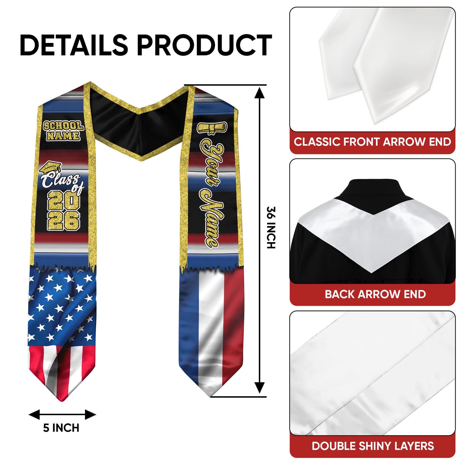 📏 Standard Graduation Size: 36" (91cm) long × 5" (12cm) wide — fits comfortably over all graduation gowns.