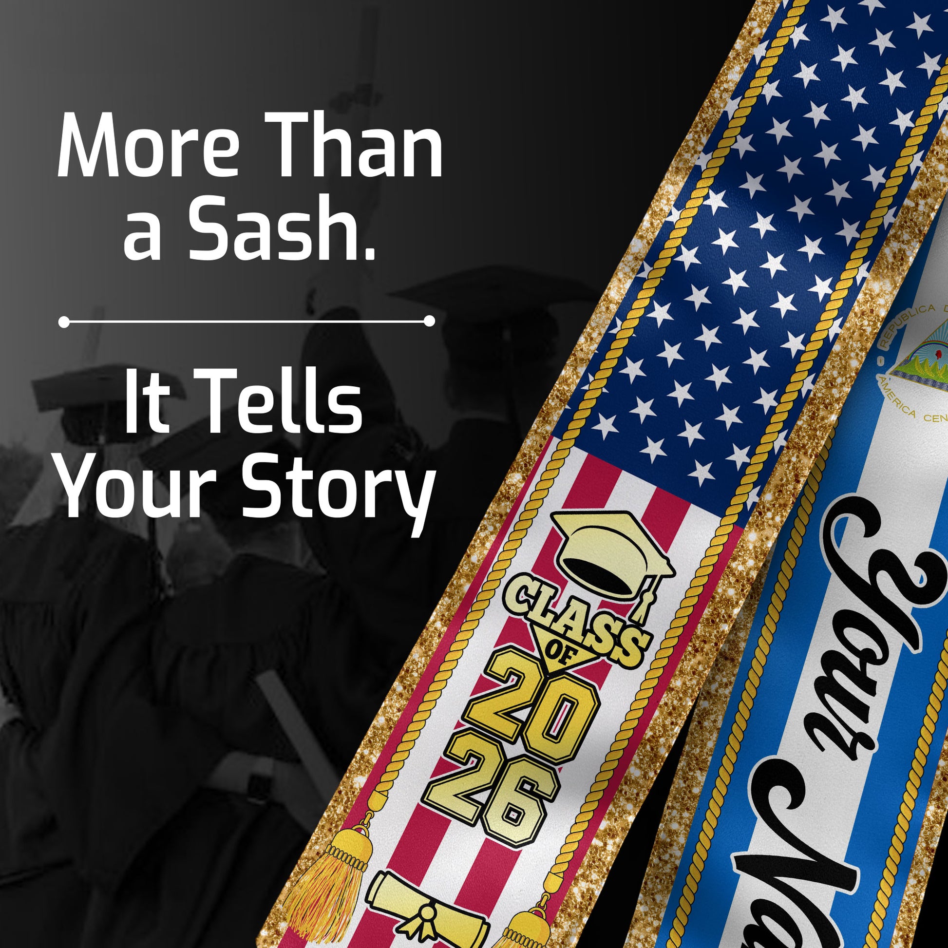 Customized Nicaragua Graduation Stole with Nicaraguan Flag Emblem, Graduation Sash for Class of 2026
