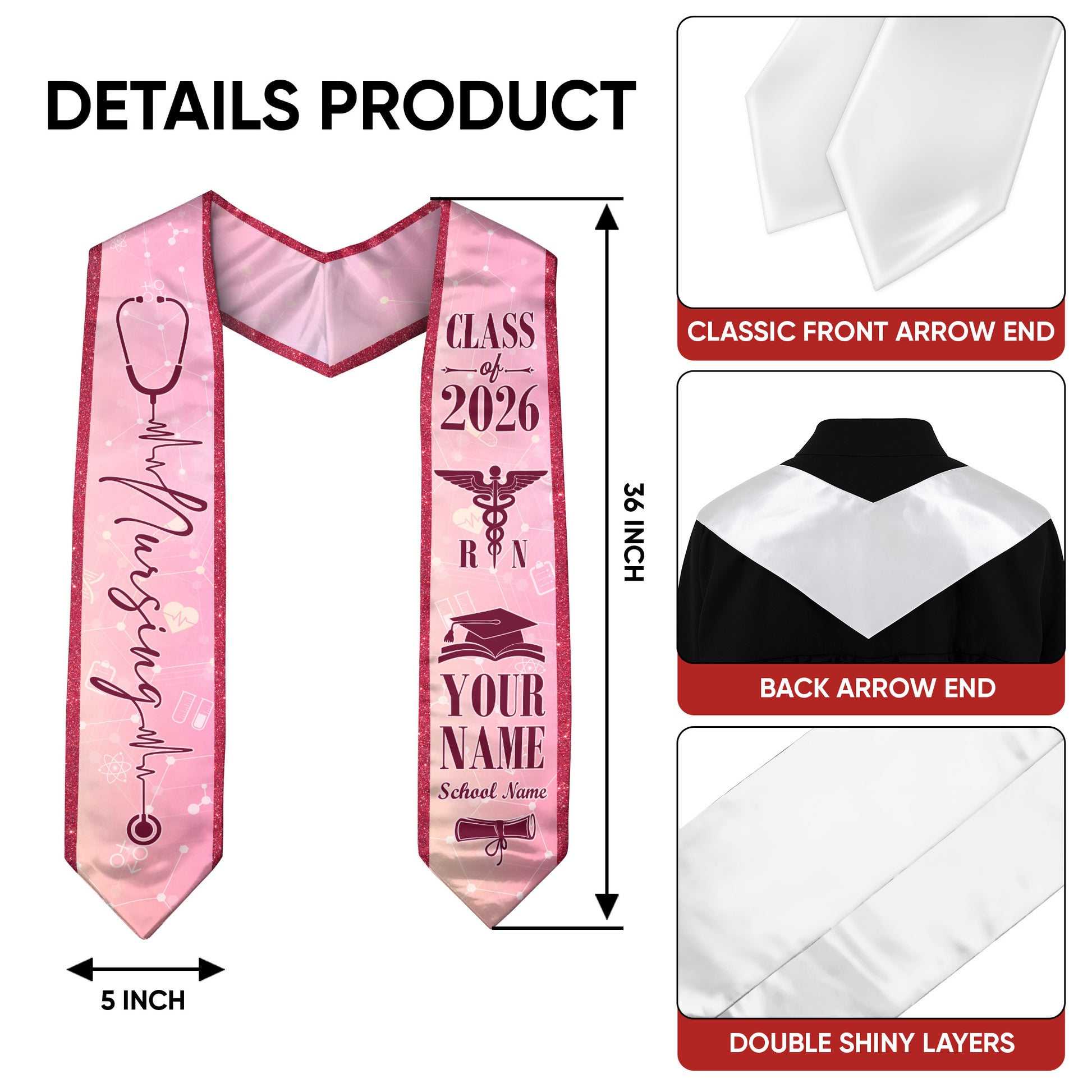 Customized Nursing School Graduation Stole for RN and BSN Students, Sash 2026