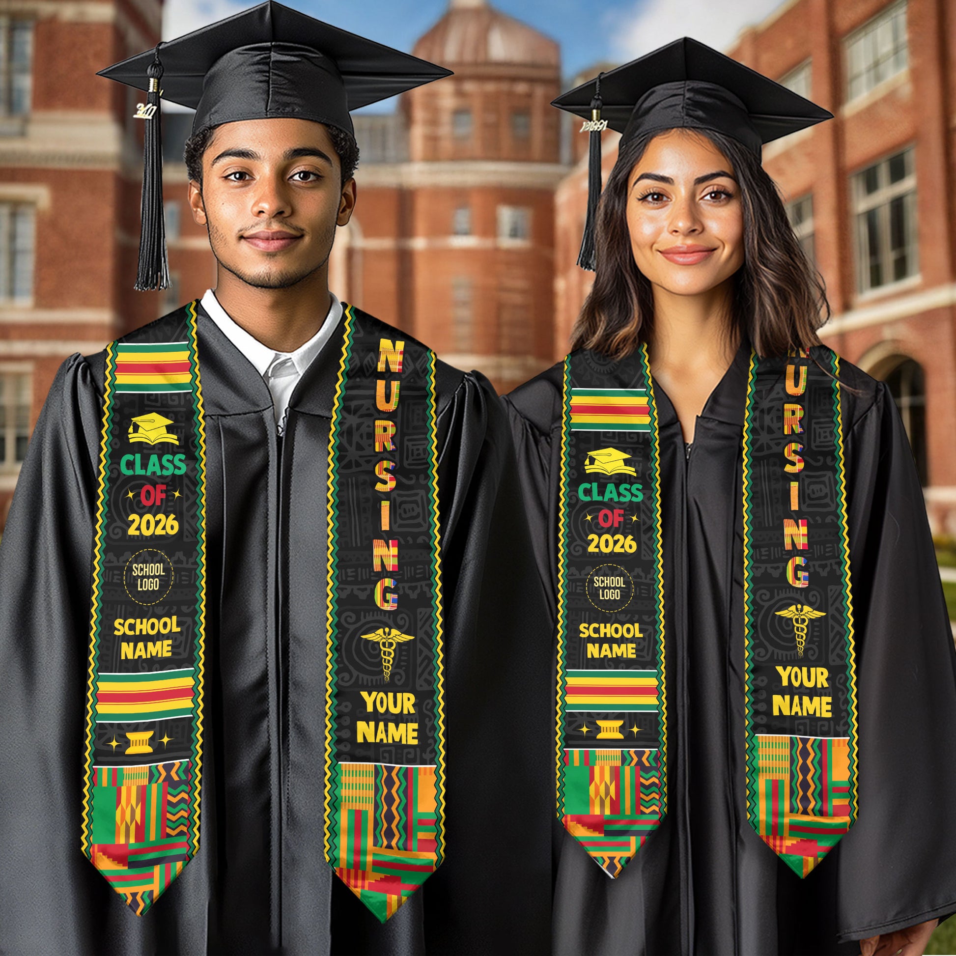 Customized Pan African Nursing Graduation Stole for RN Nurses, BSN Graduation Sash 2026