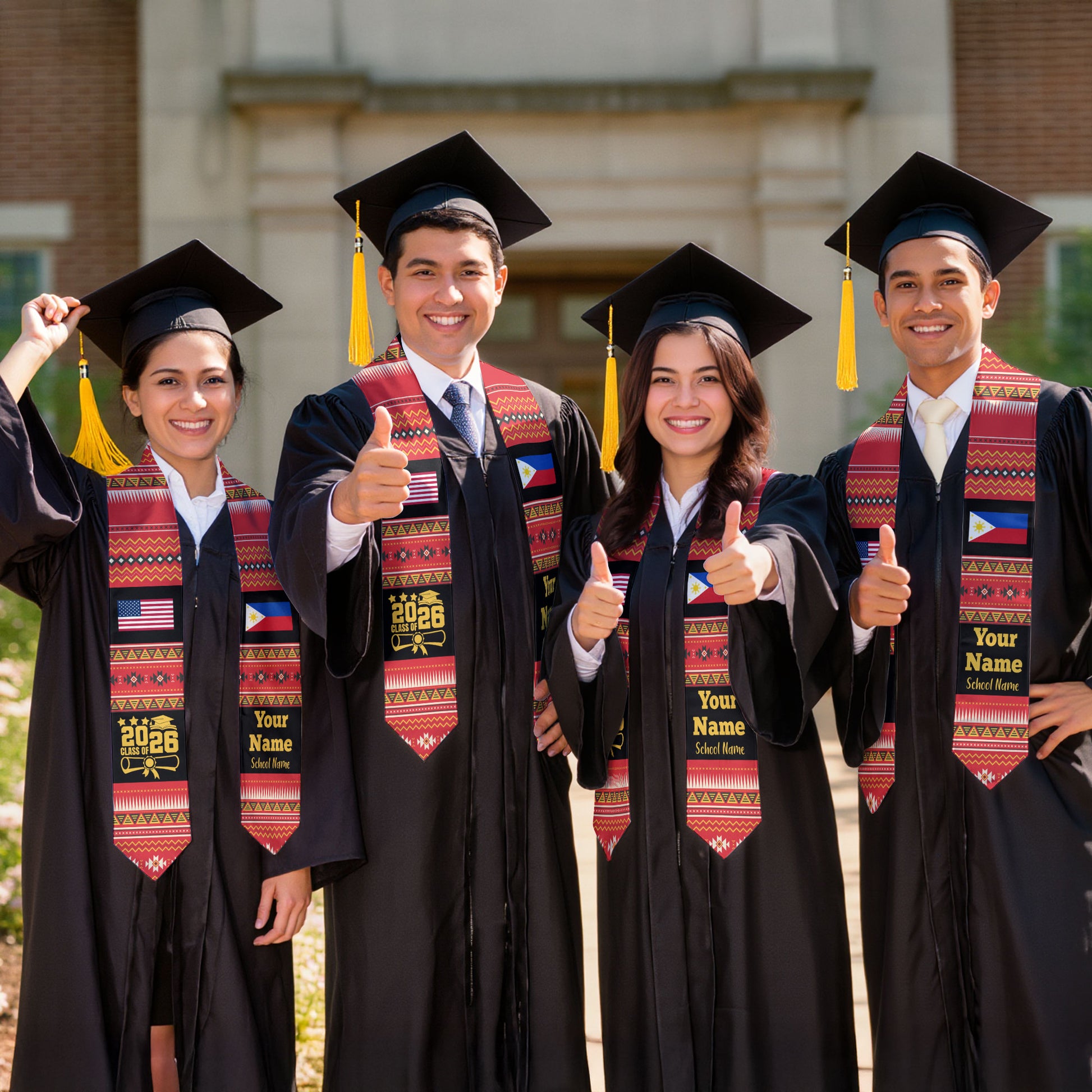 Customized Philippines Graduation Stole Featuring National Flag Motif, Graduation Sash for Class of 2026