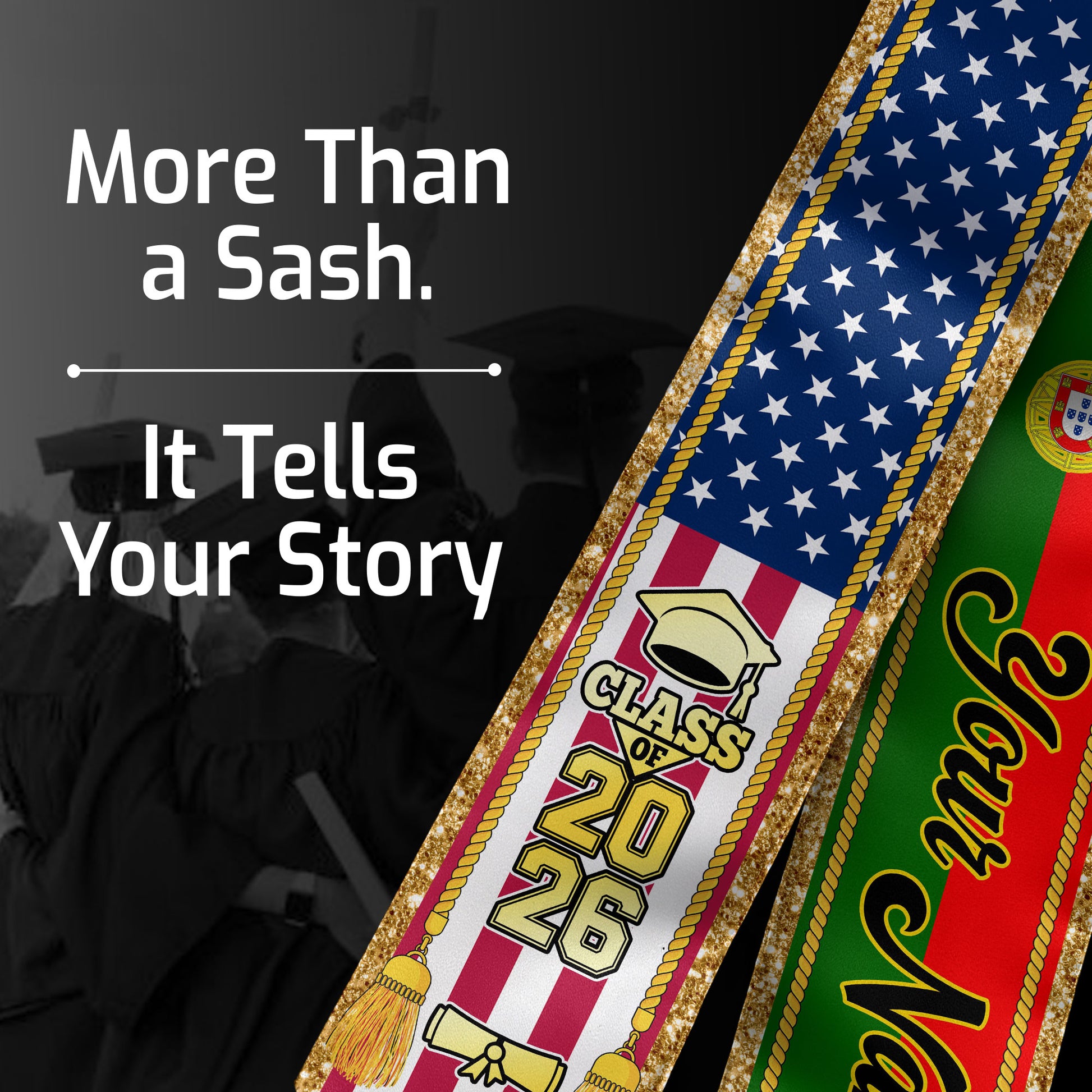 Customized Portugal Graduation Stole with Portuguese Flag Emblem, Graduation Sash for Class of 2026