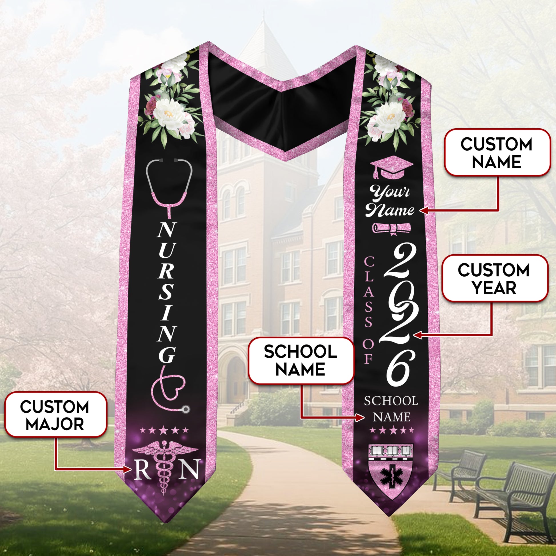 Customized RN Graduation Sash for Nursing School Completion, Professional Nurse Stole 2026