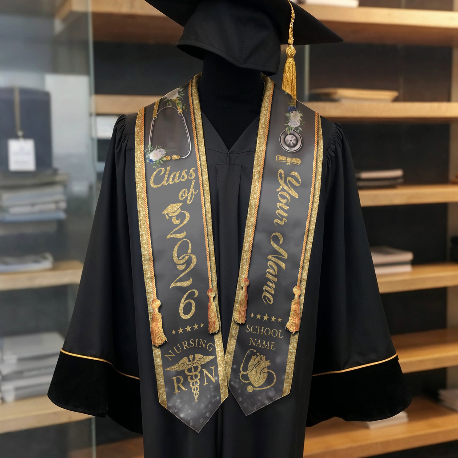 Customized RN Nurse Graduation Stole Highlighting Nursing Achievement, Graduation Sash 2026