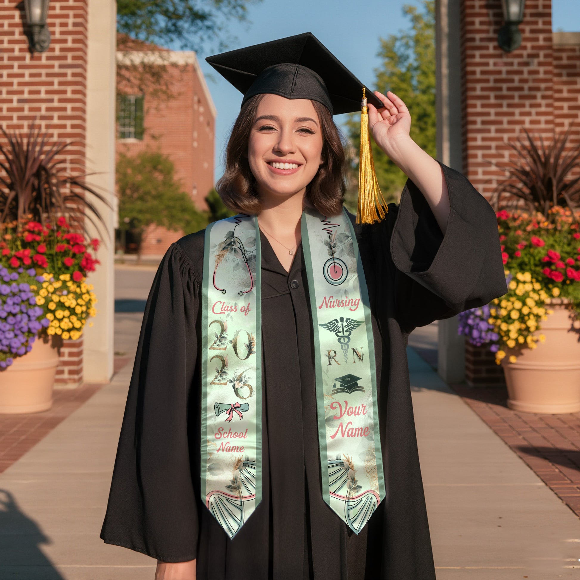 Customized RN Nurse Graduation Stole with Professional Design, BSN Sash Class of 2026