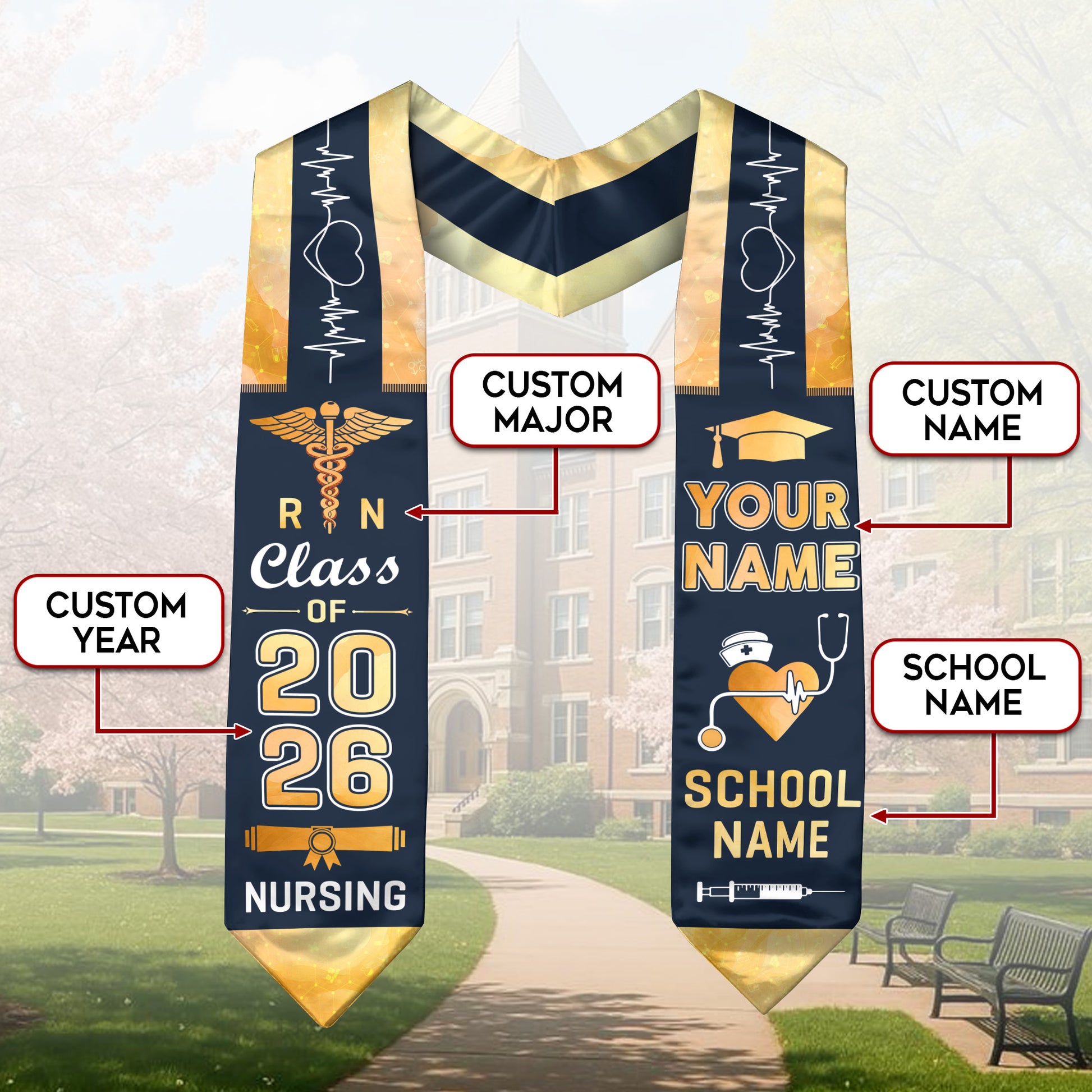 Customized RN Nursing Graduation Stole, BSN Nurse Ceremony Sash for Class of 2026
