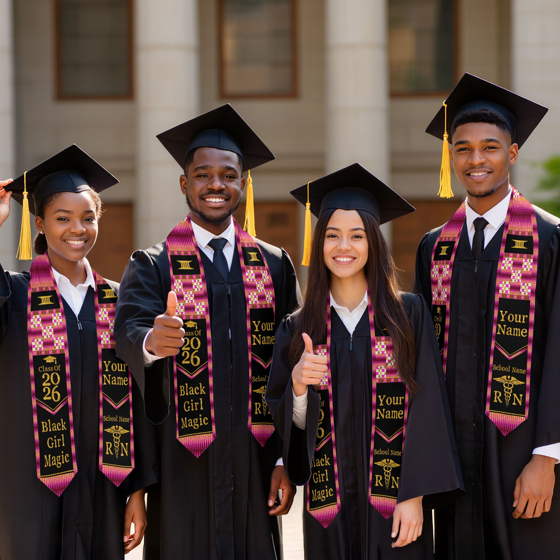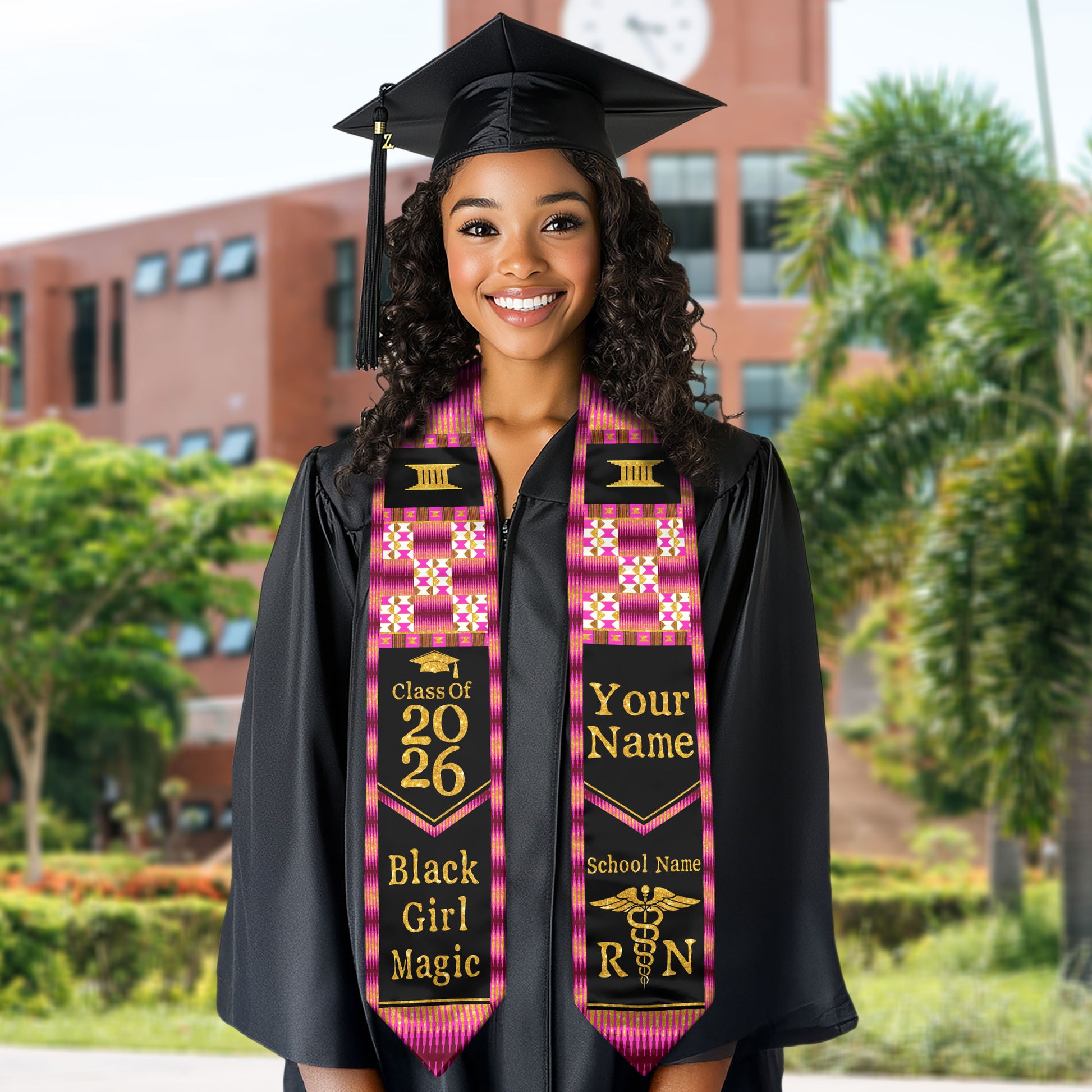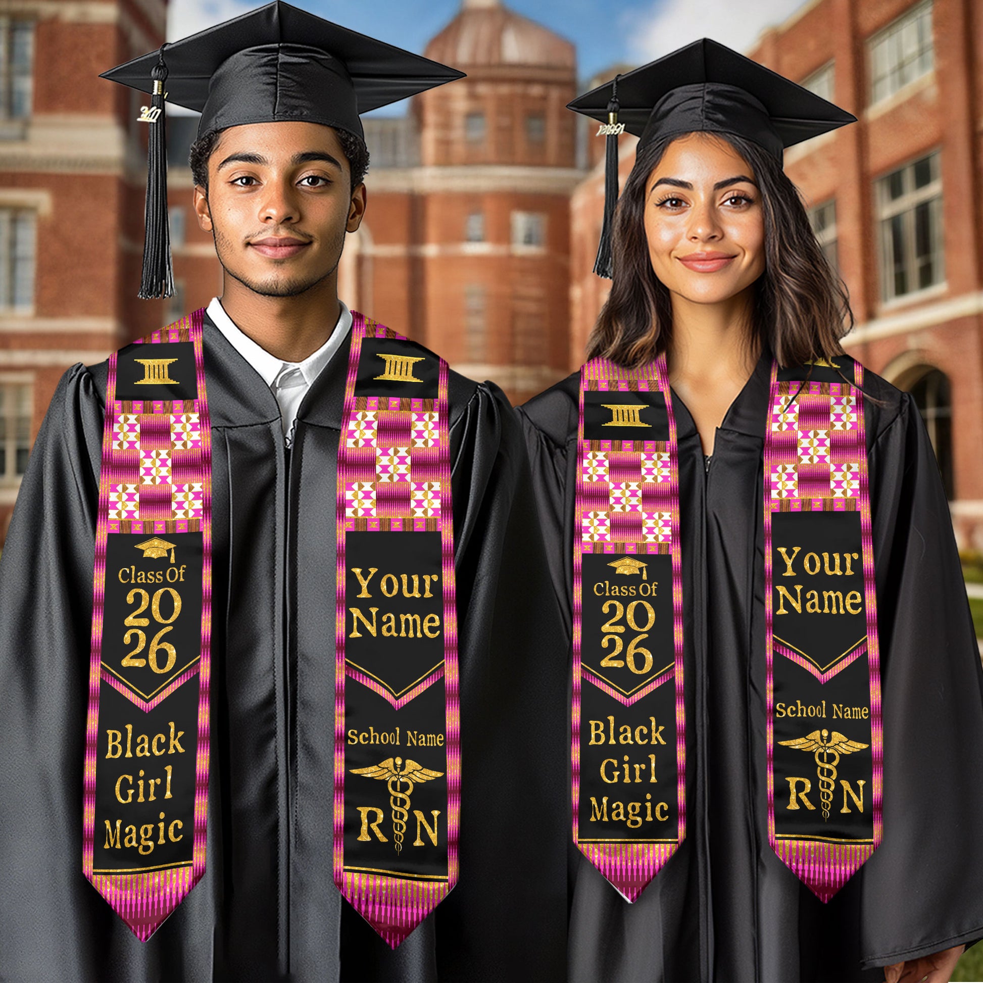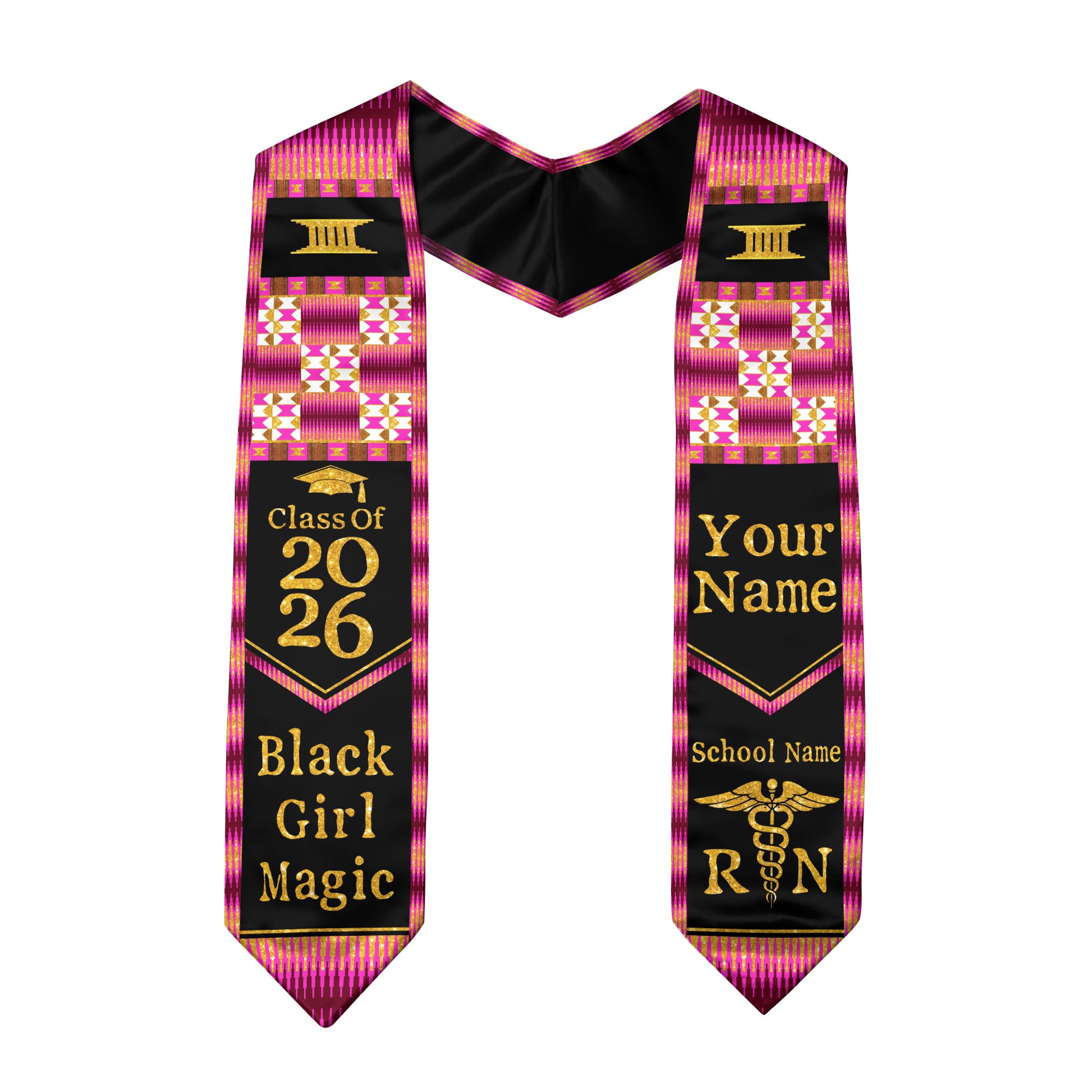 Customized RN Nursing Graduation Stole with African Cultural Design, Class of 2026