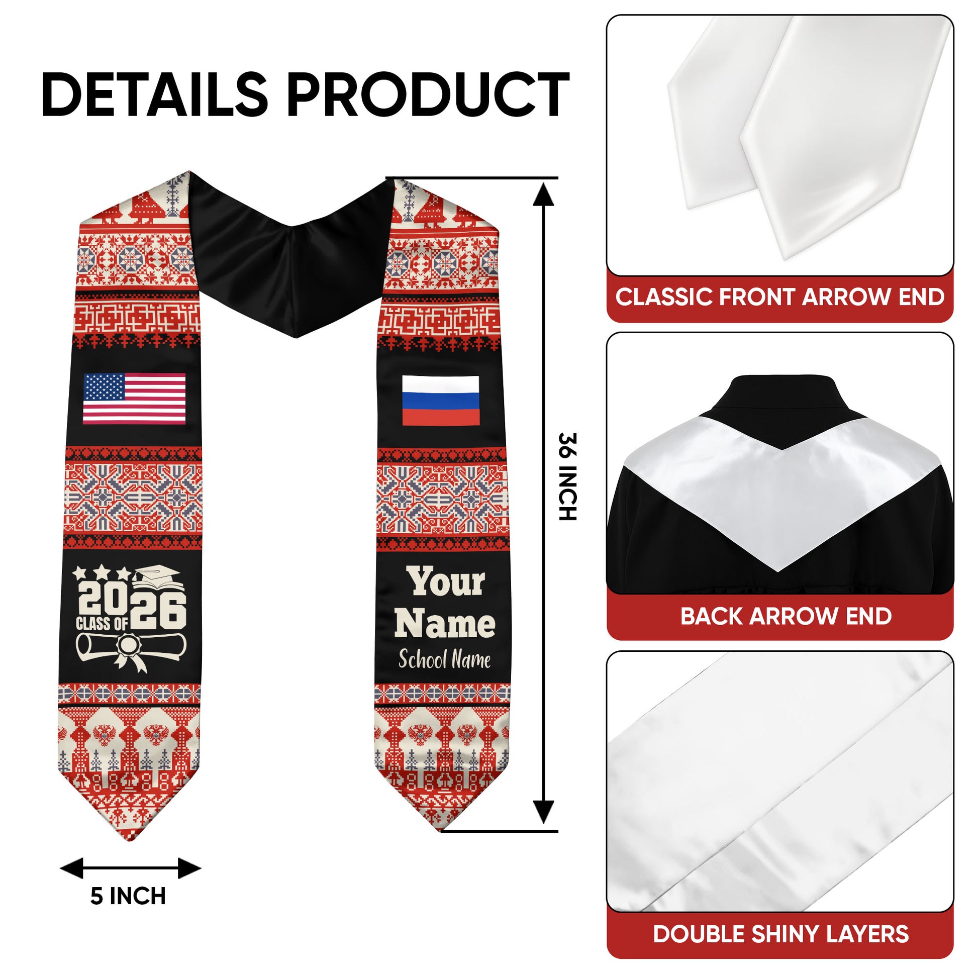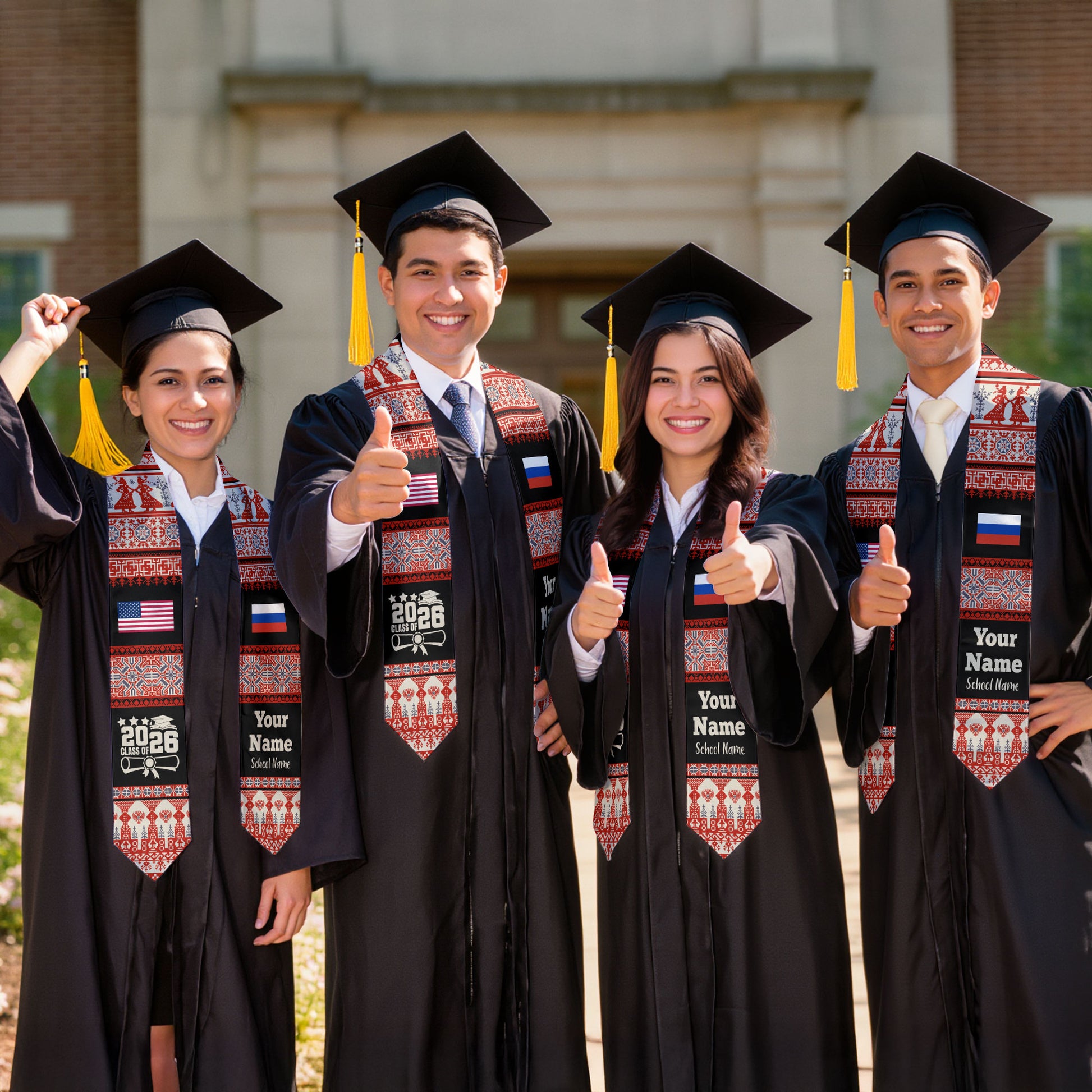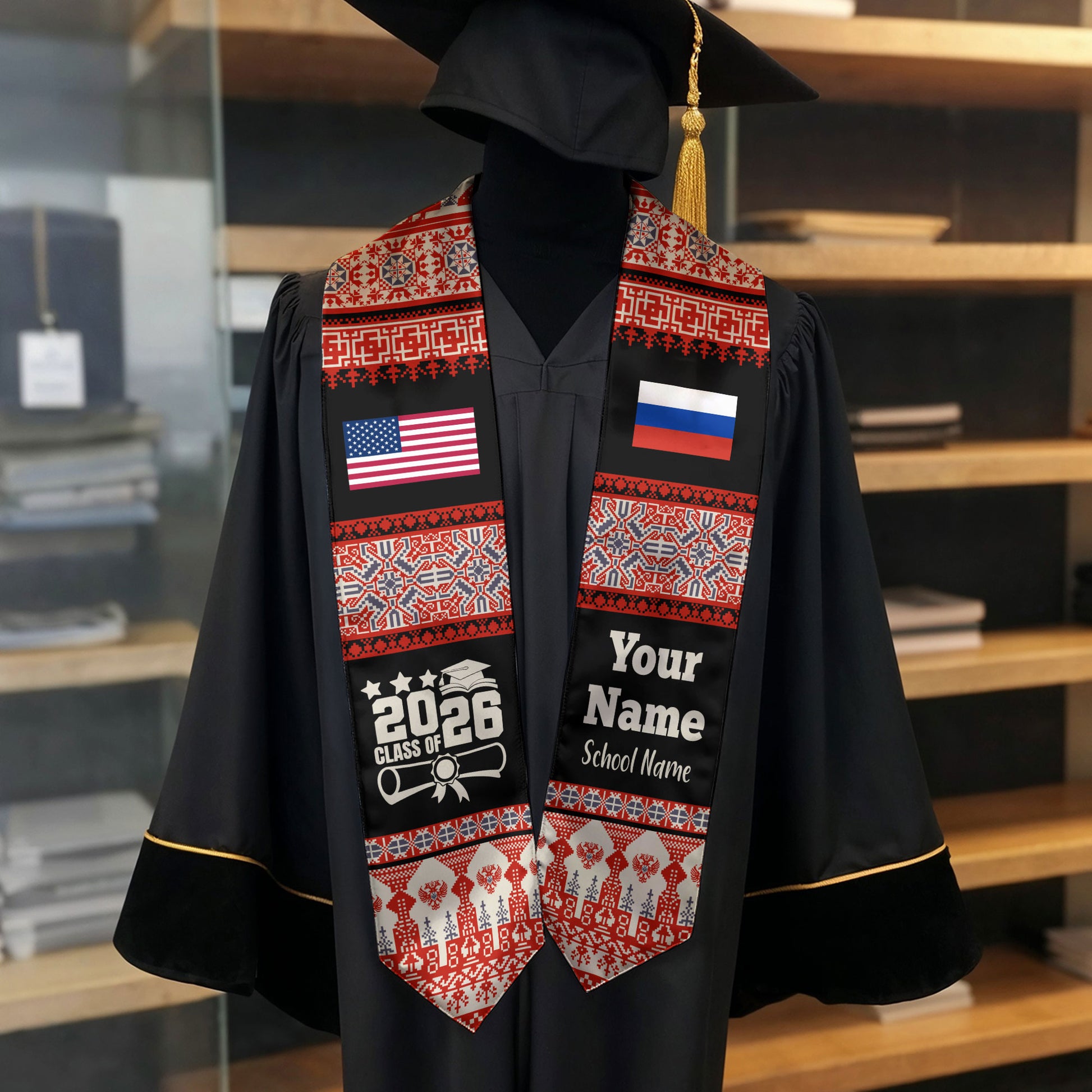 Customized Russia Graduation Stole Featuring National Flag Motif, Graduation Sash for Class of 2026
