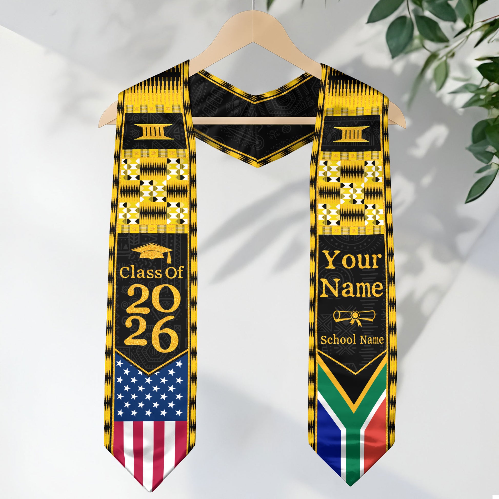 Customized South Africa Graduation Stole with Patriotic Flag Motif, Graduation Sash for Class of 2026