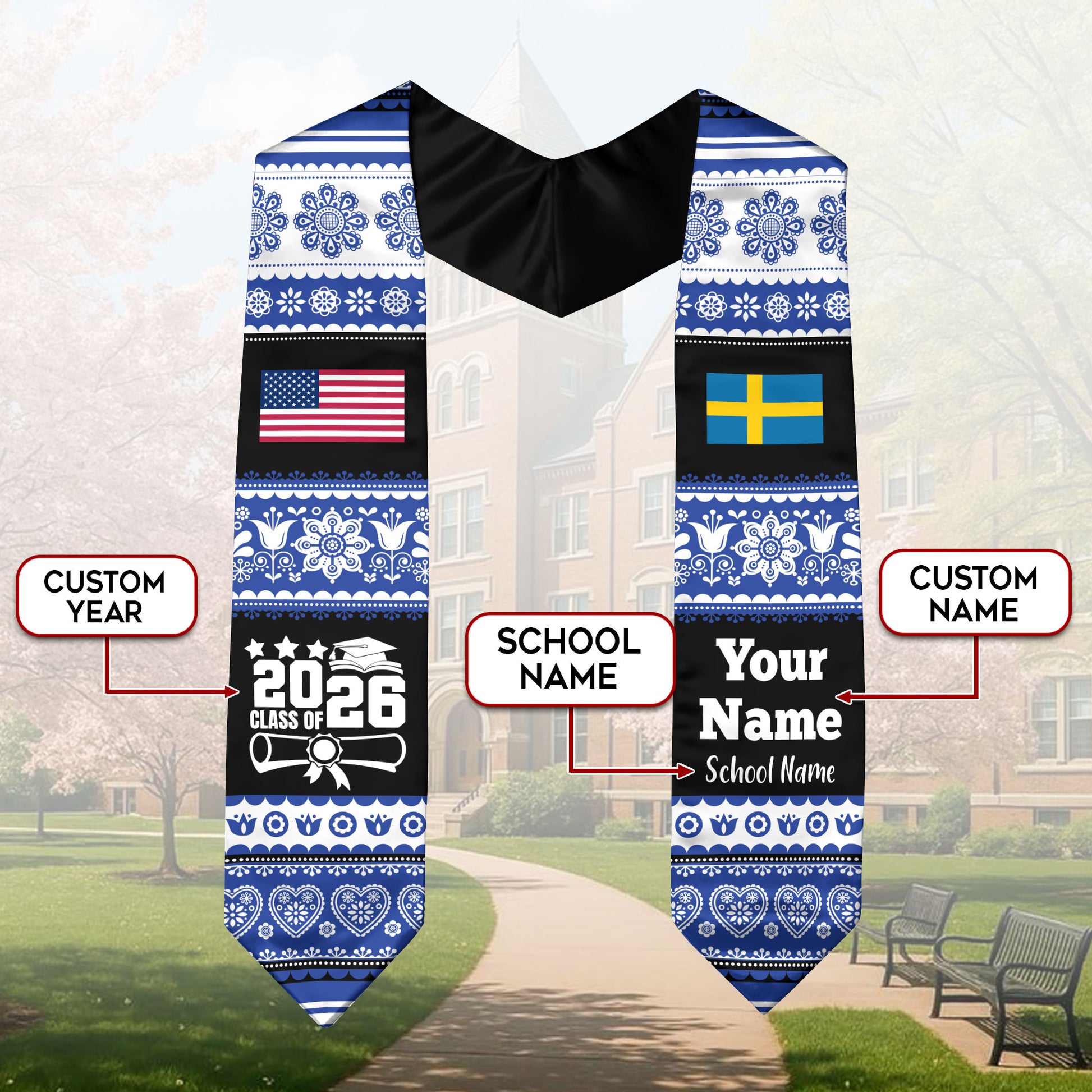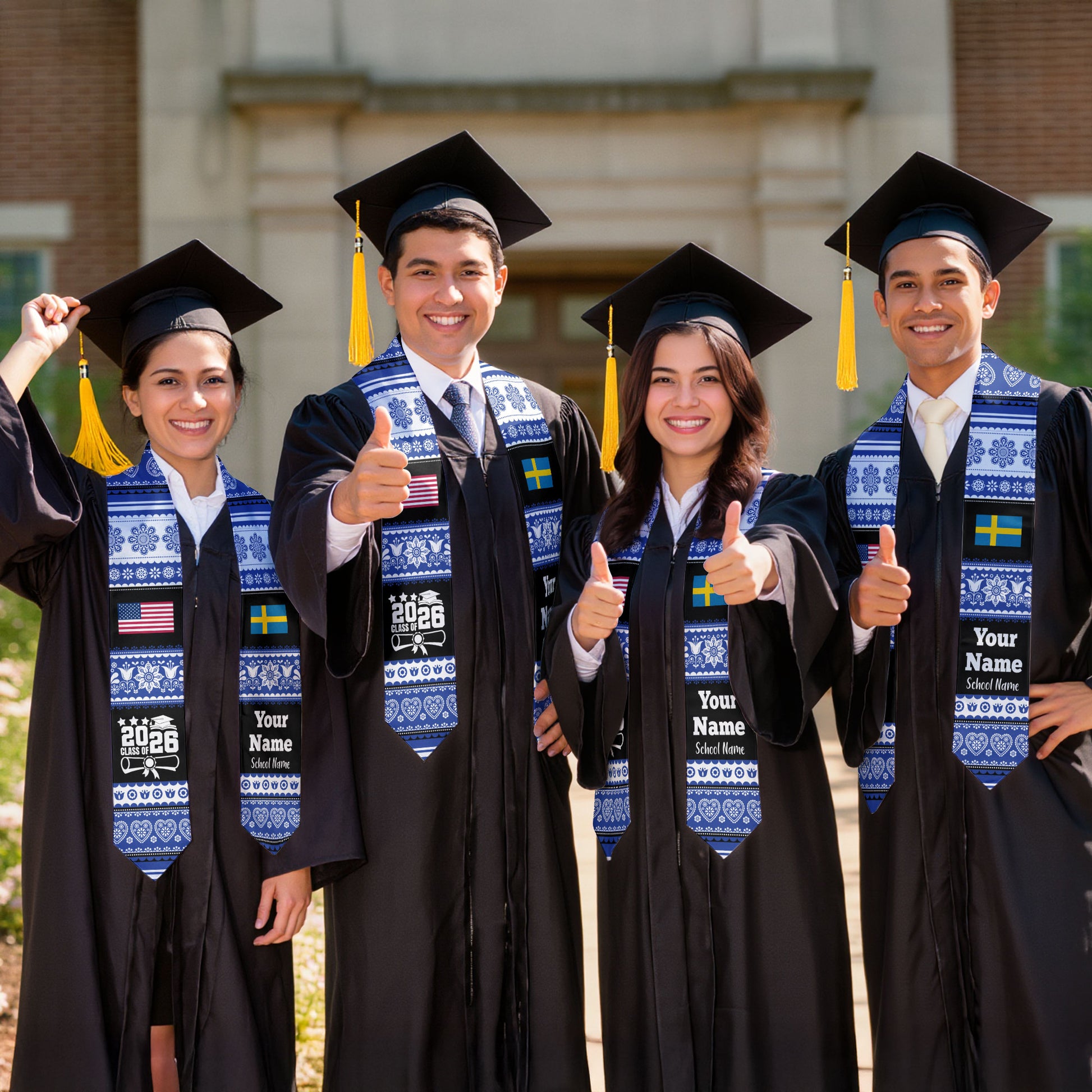 Customized Sweden Graduation Stole Featuring National Flag Motif, Graduation Sash for Class of 2026