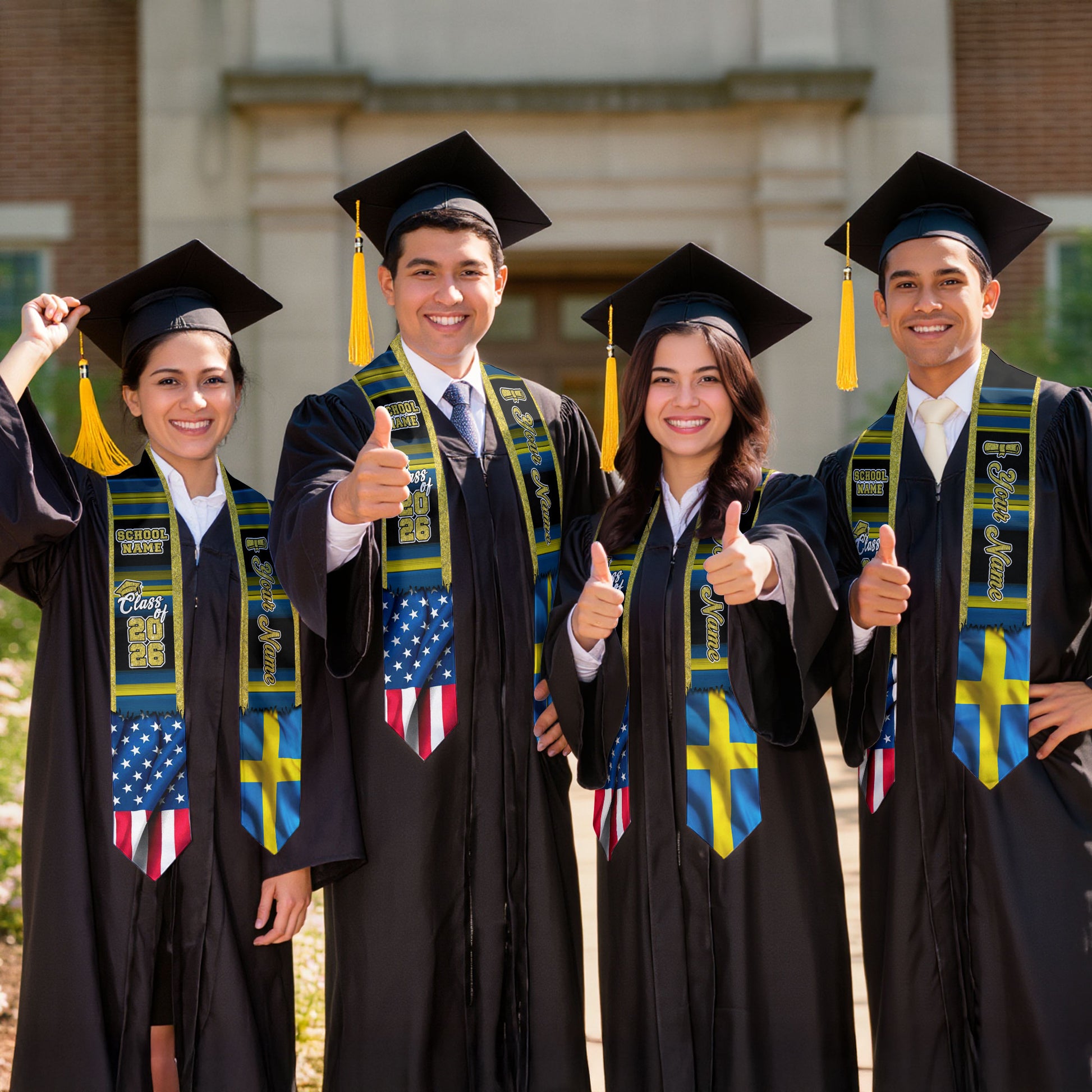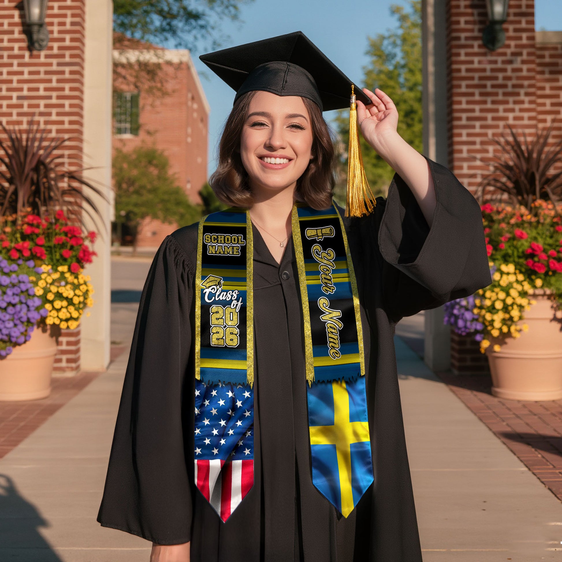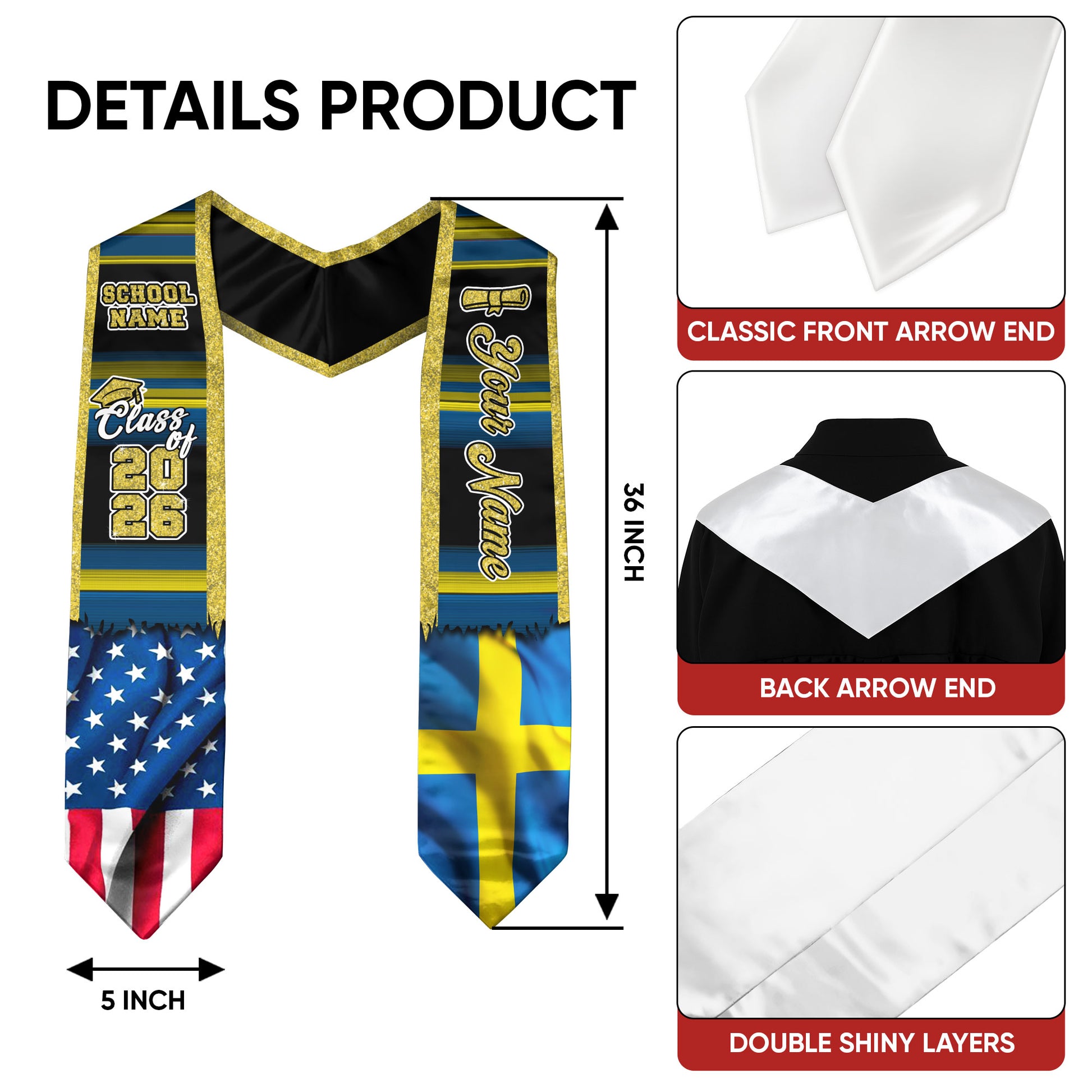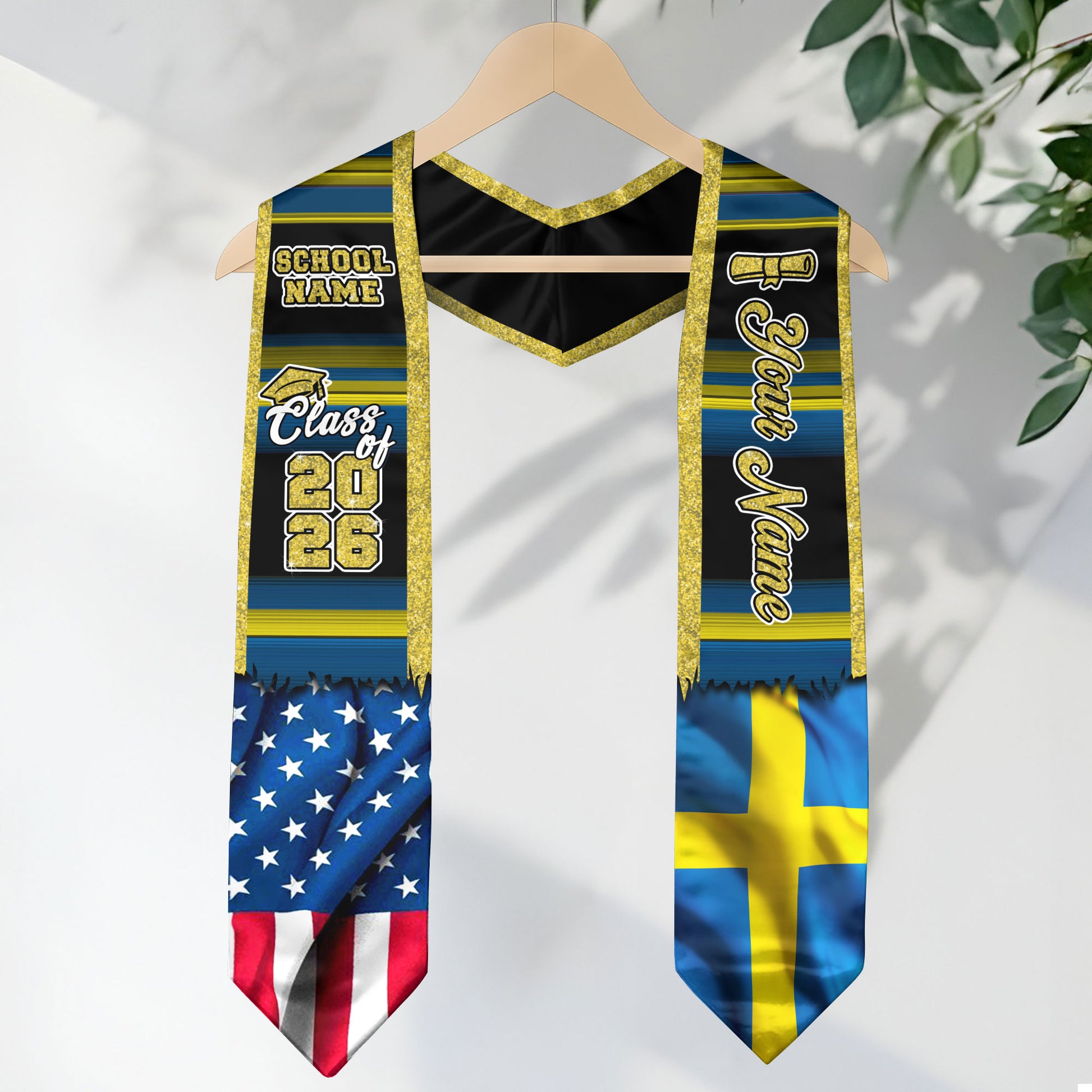 Customized Sweden Graduation Stole Highlighting Swedish Flag Heritage Pattern, Graduation Sash Class of 2026
