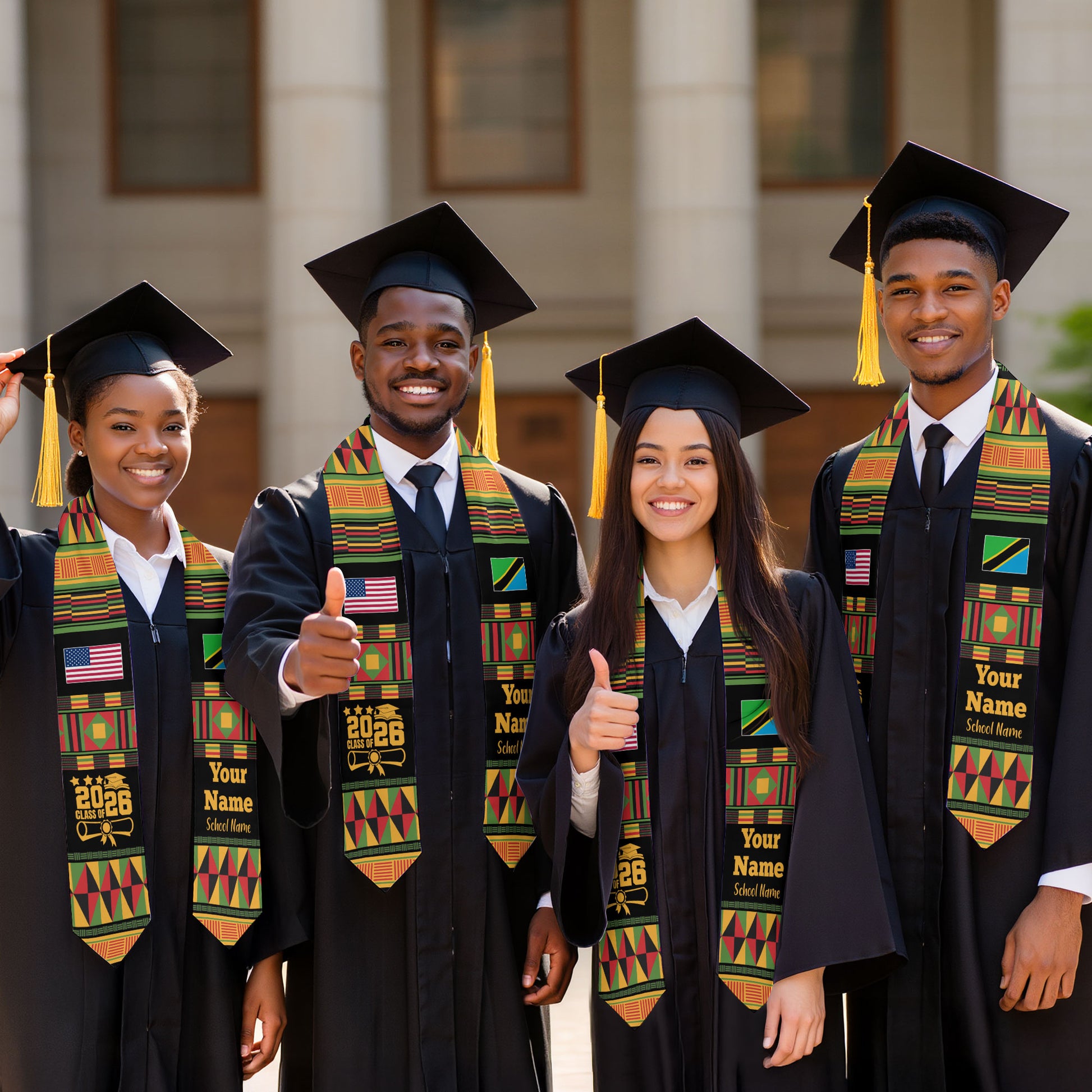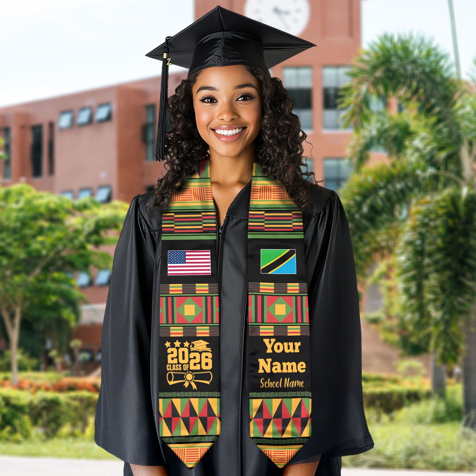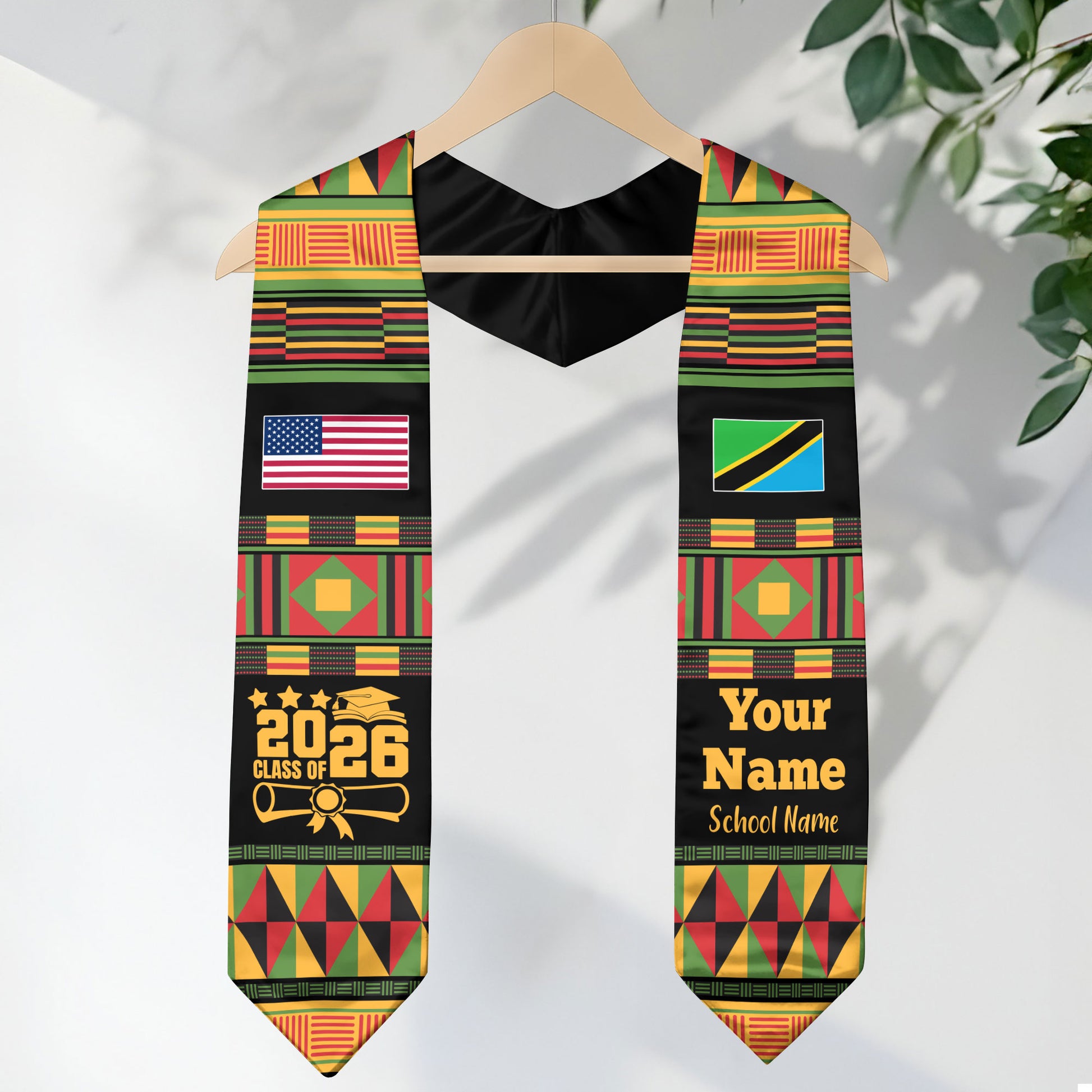 Customized Tanzania Graduation Stole Featuring National Flag Motif, Graduation Sash for Class of 2026