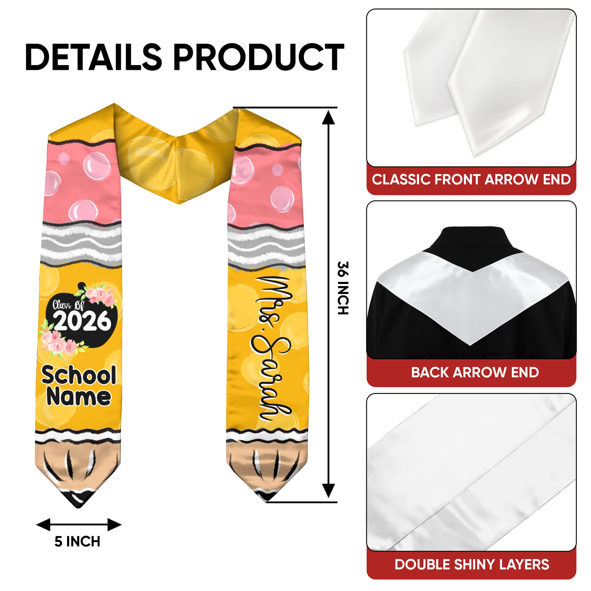 📏 Standard Graduation Size: 36" (91cm) long × 5" (12cm) wide — fits comfortably over all graduation gowns.
