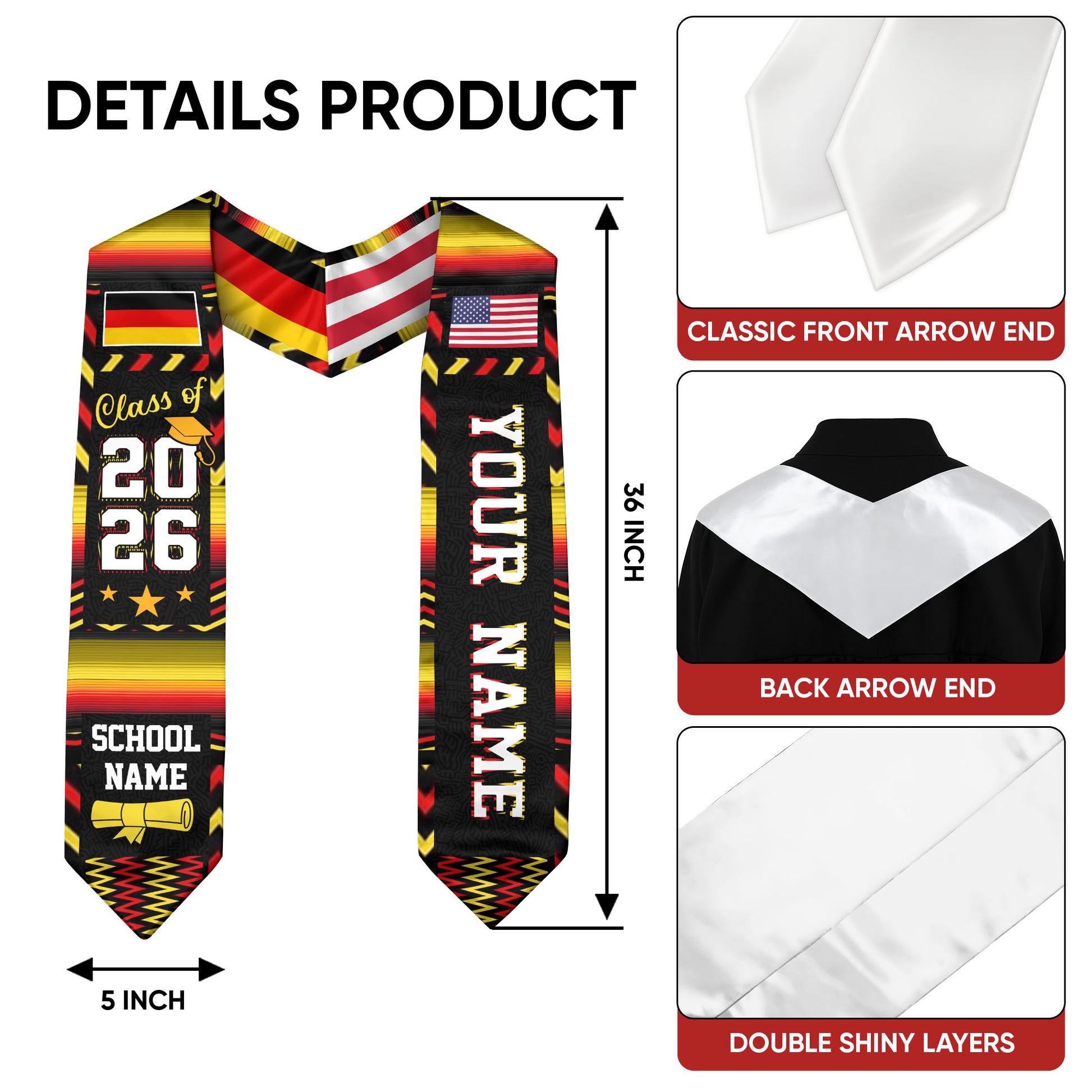 Germany Graduation Stole 2026, German Flag Sash, Graduation Stole with Custom Accent