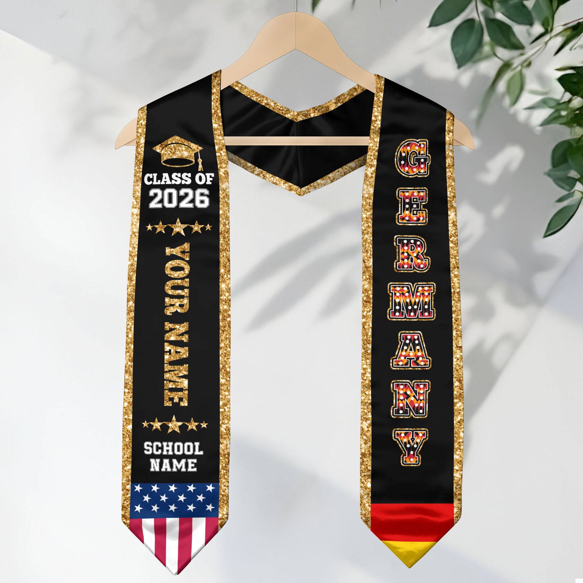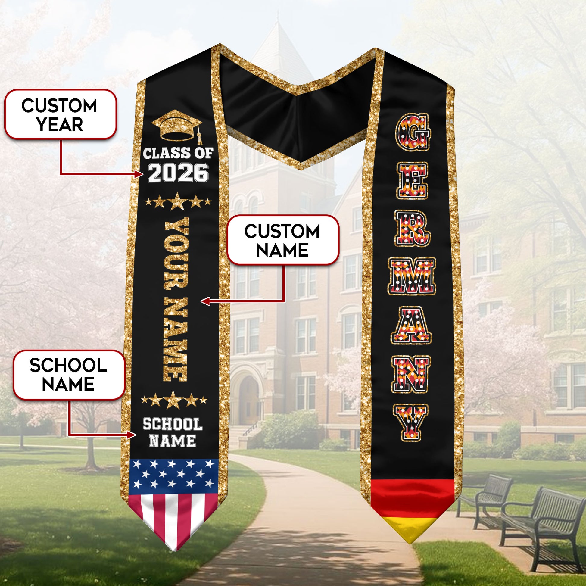 Germany Graduation Stole 2026, Germany Flag Sash, Personal Detail Option for Graduates
