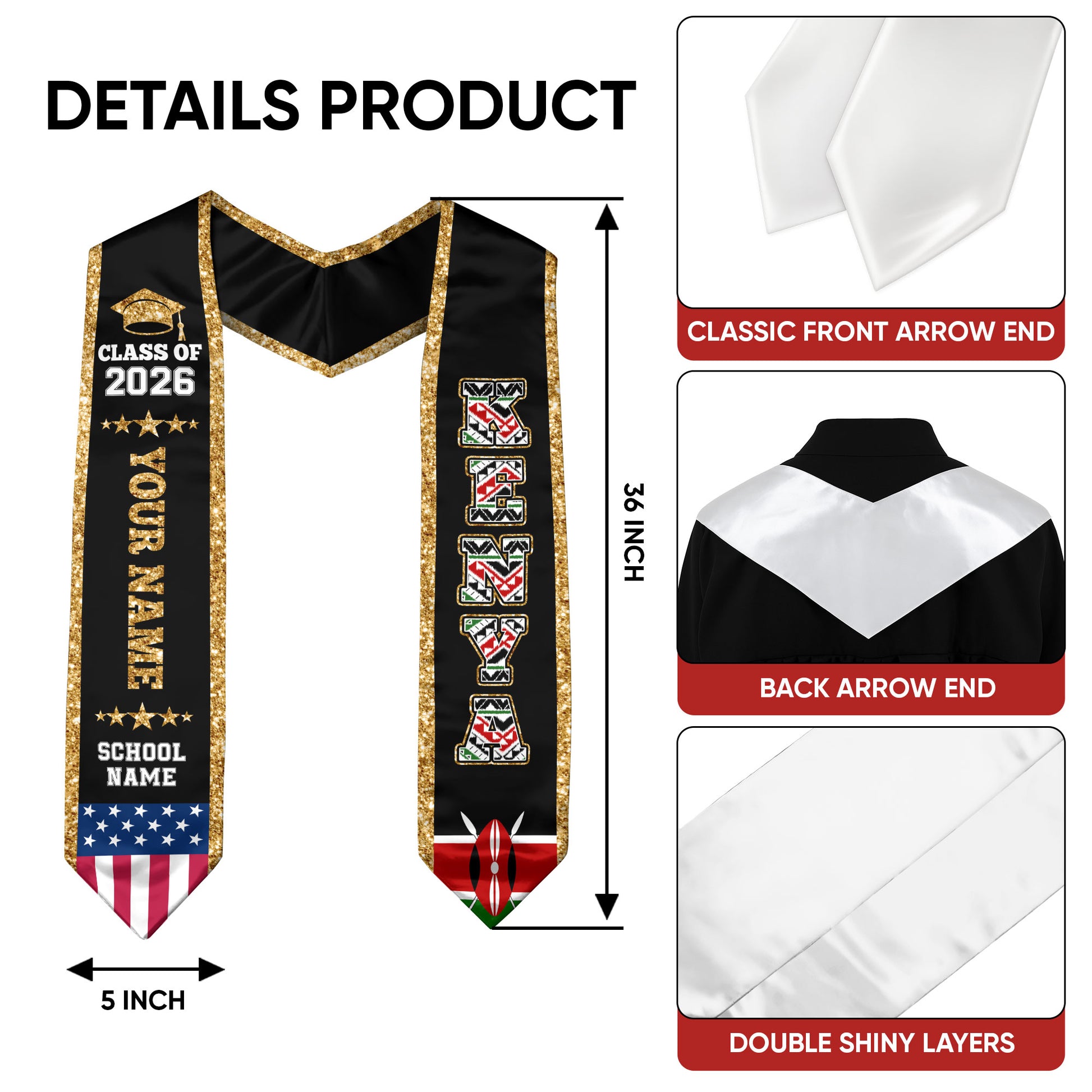 Kenya Graduation Stole 2026, Kenya Flag Sash, Personal Detail Option for Graduates
