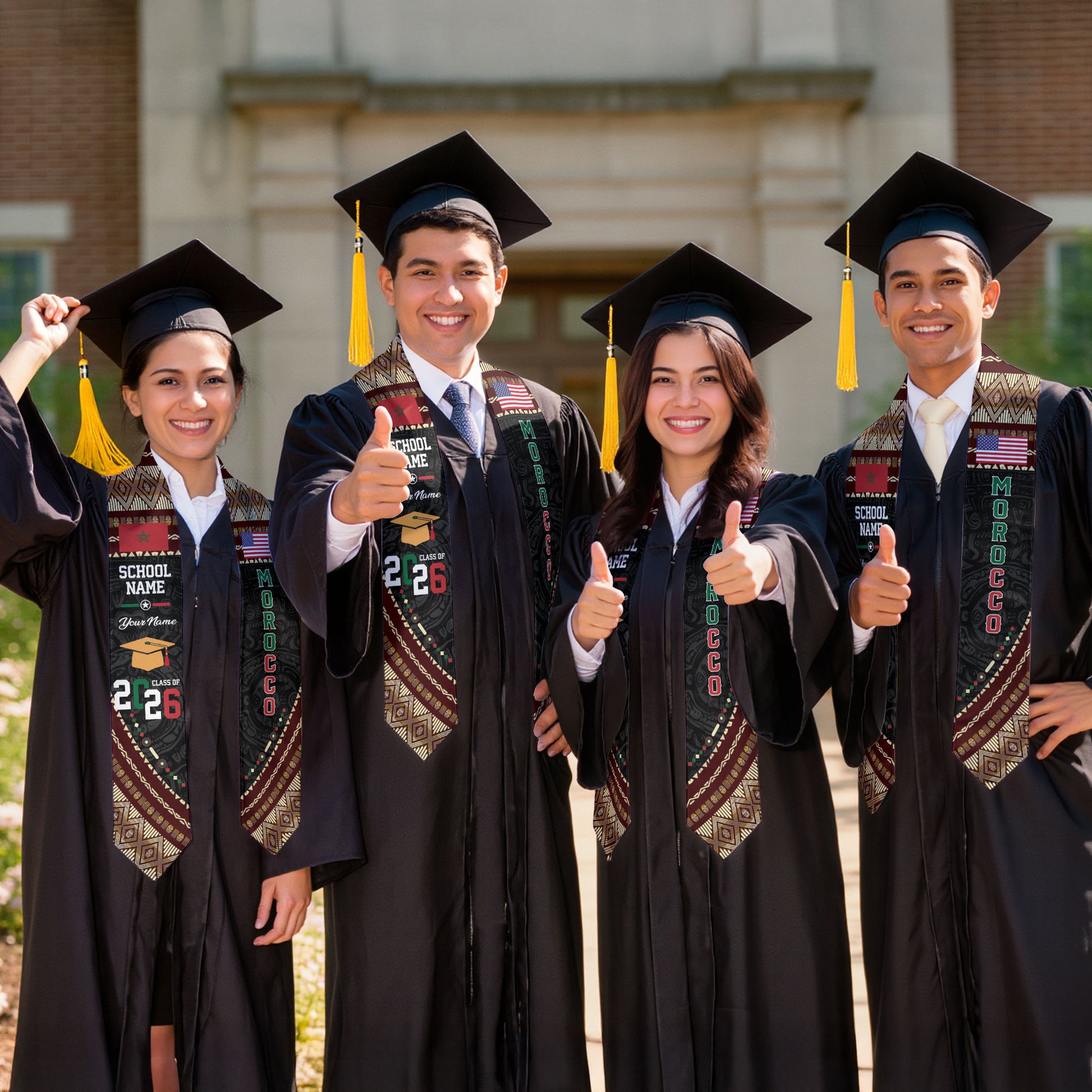 Morocco Flag Graduation Stole 2026, Moroccan Grad Sash, Custom-Ready Gift Stole 2026