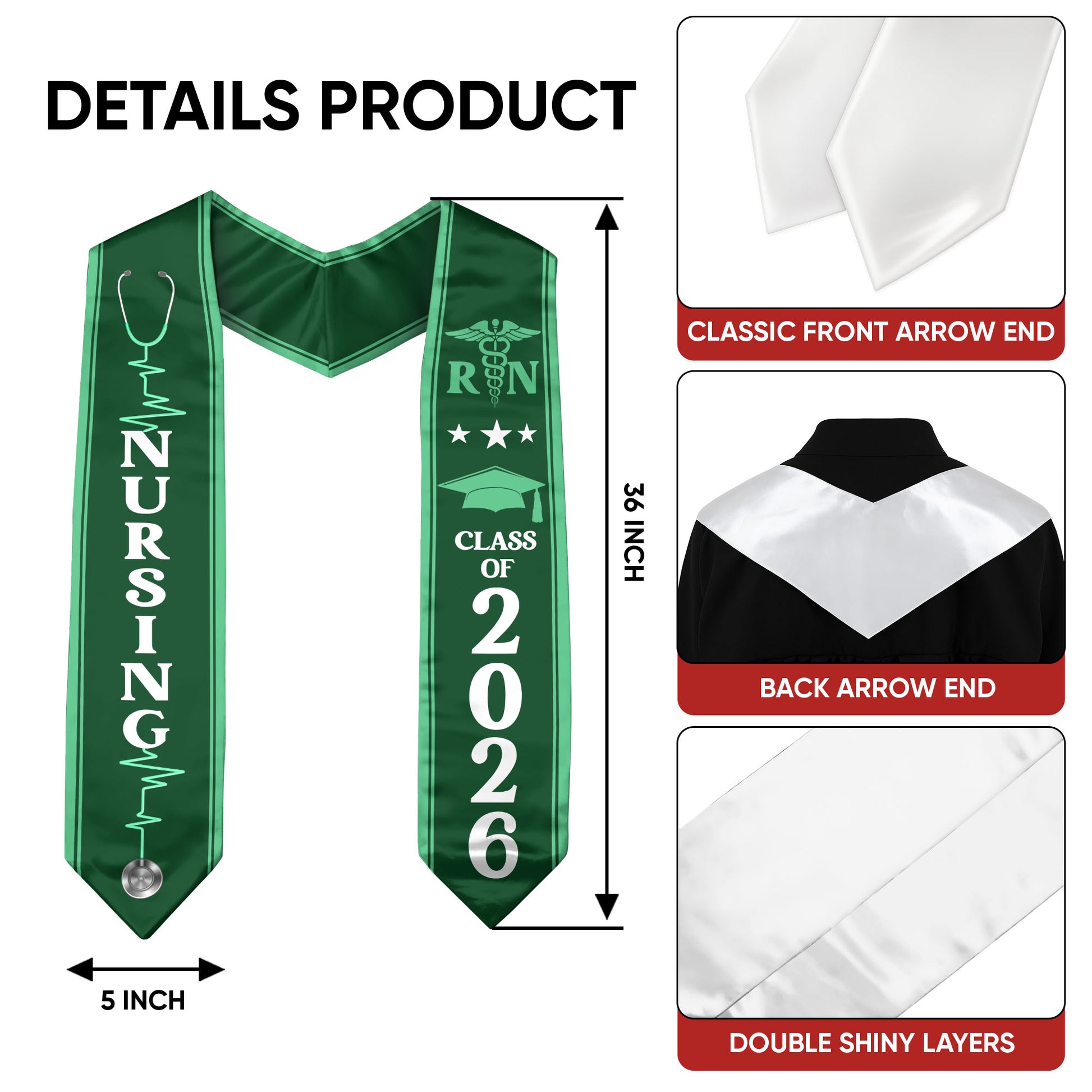 Nursing Graduation Sash 2026, RN Graduation Stole for Nursing School Graduates