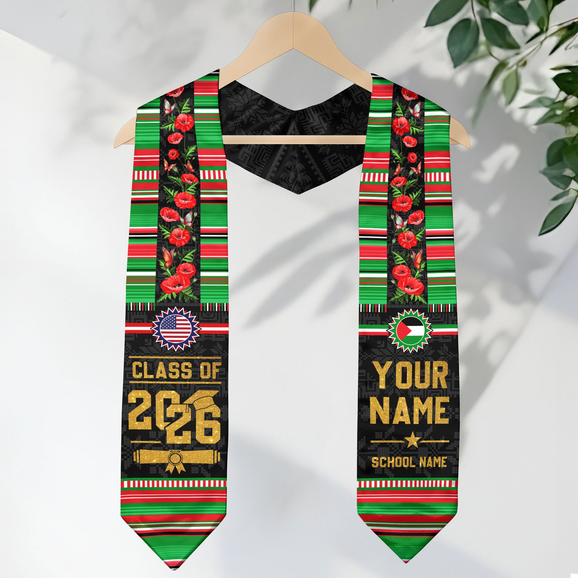 Palestine Flag Graduation Stole 2026, Palestinian Graduation Sash, Personalized Finish