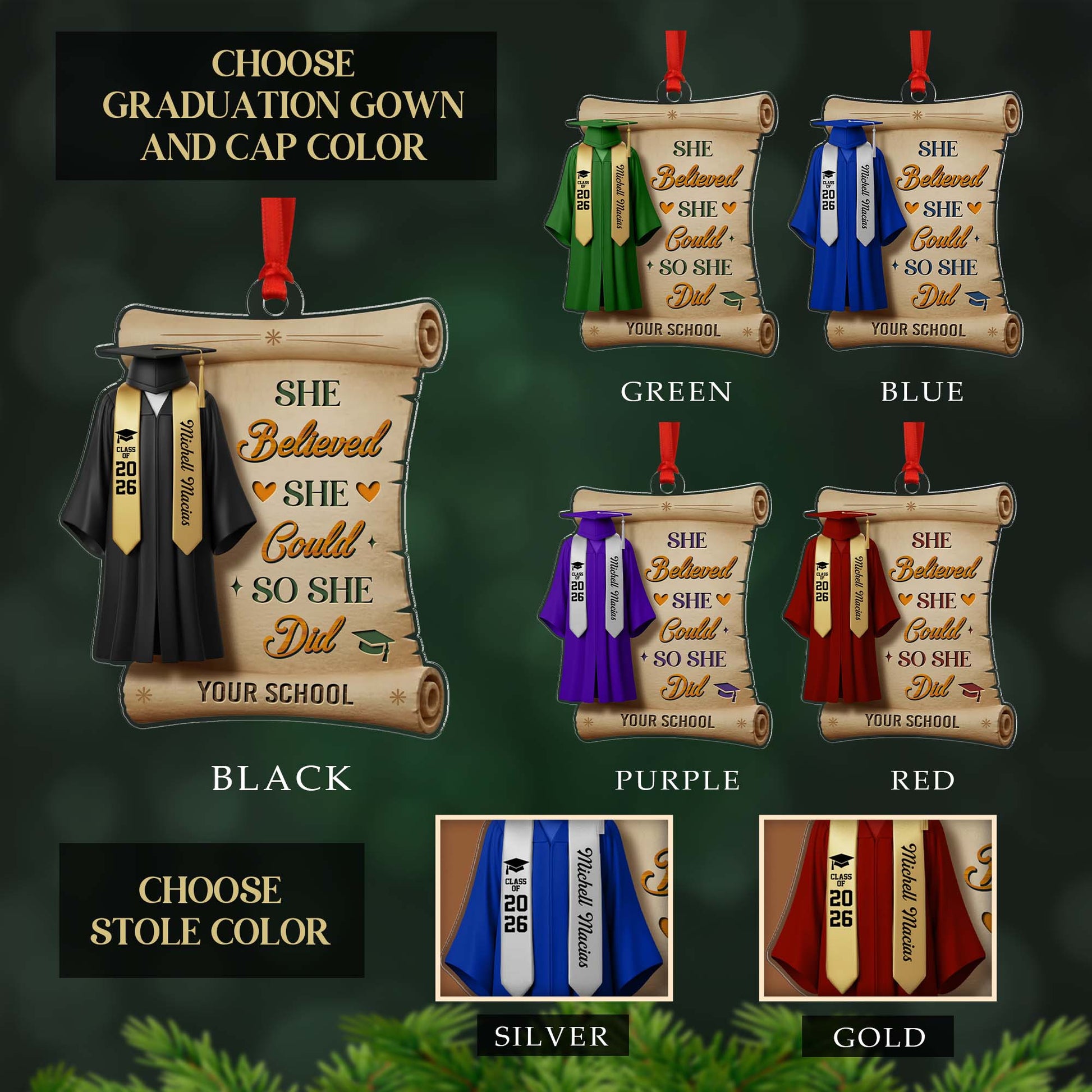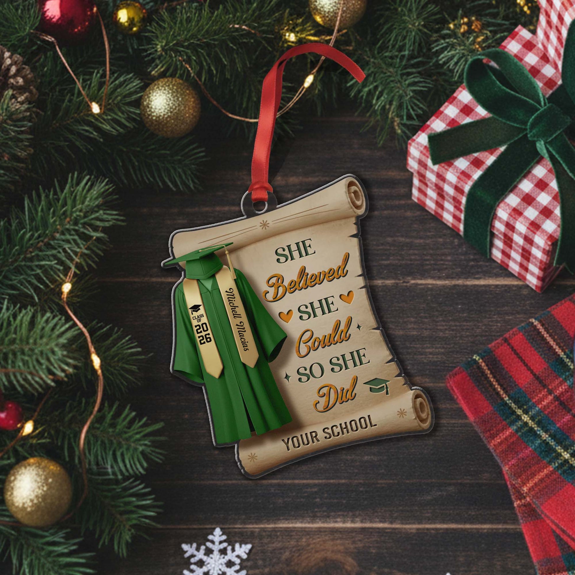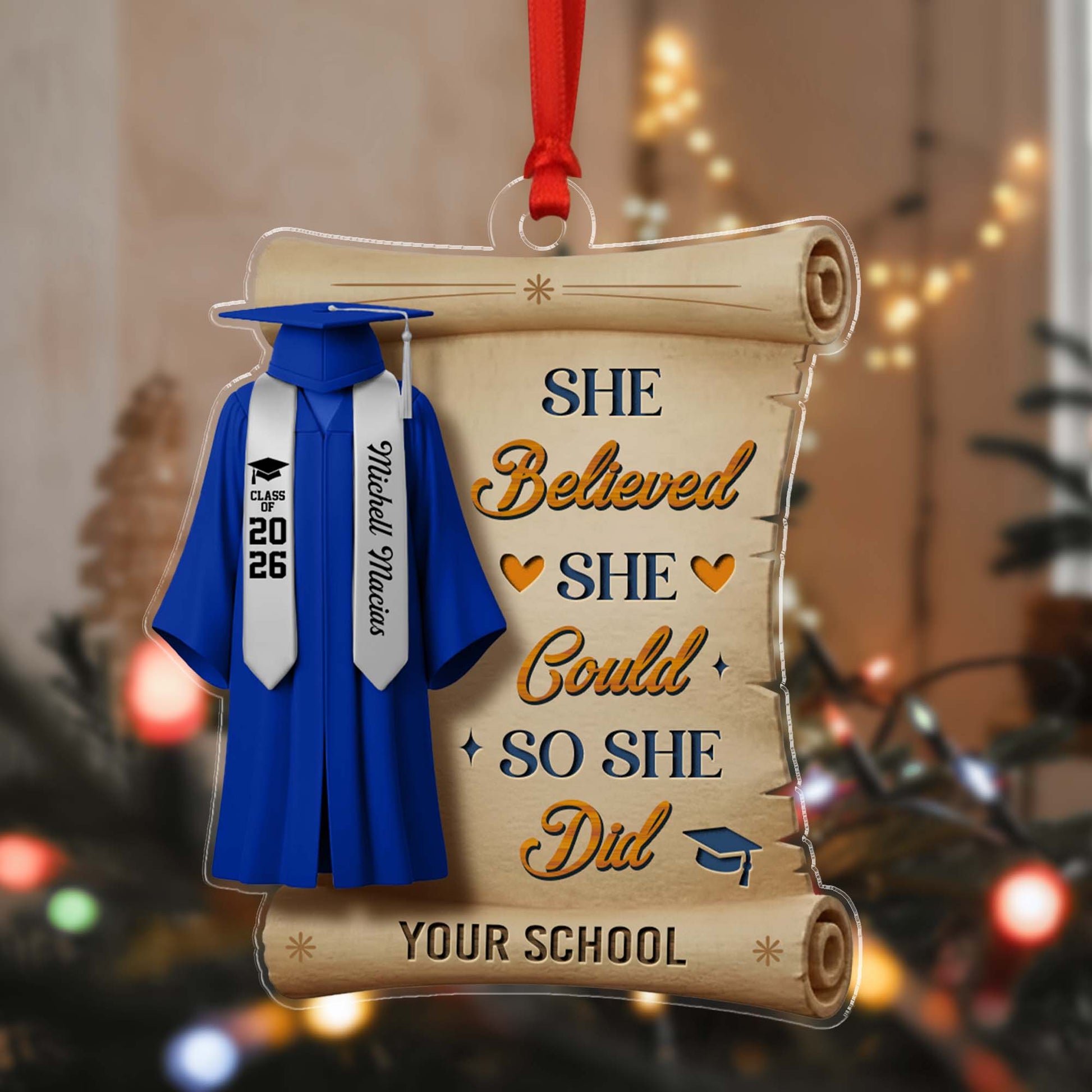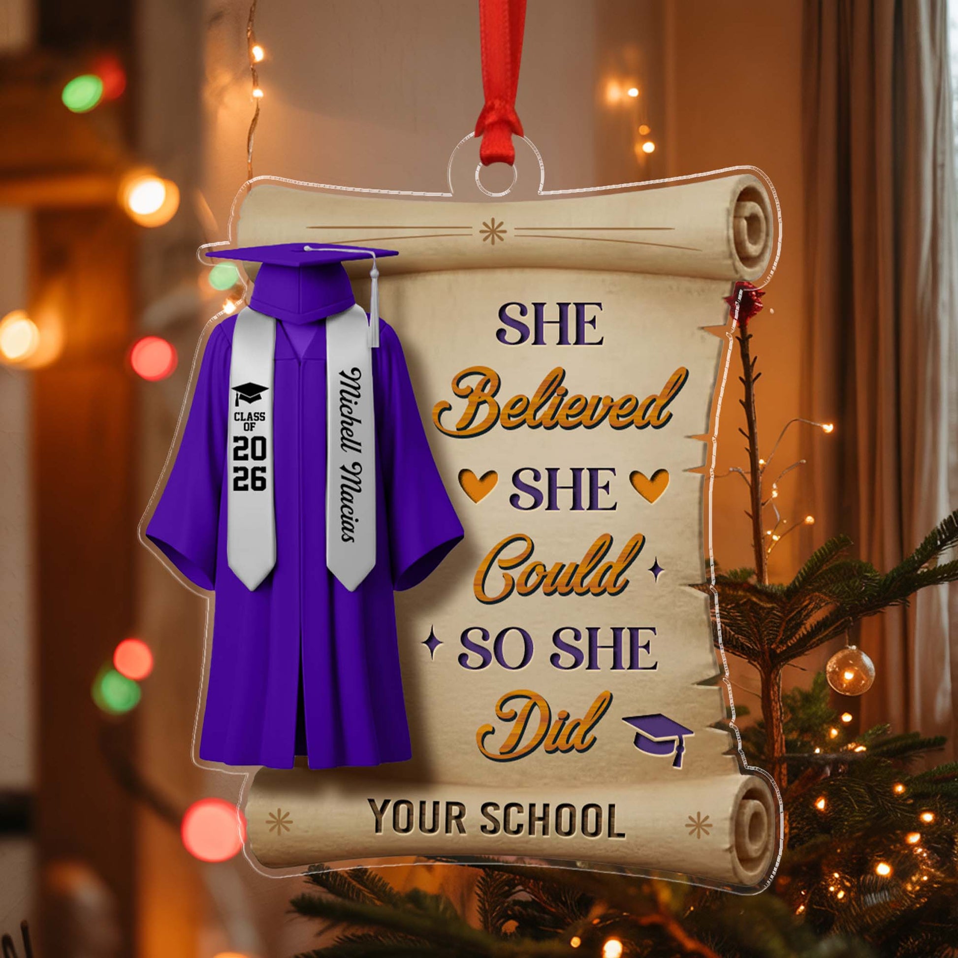 Personalized She Believed She Could So She Did Class Of 2026 Graduation Quote Ornament